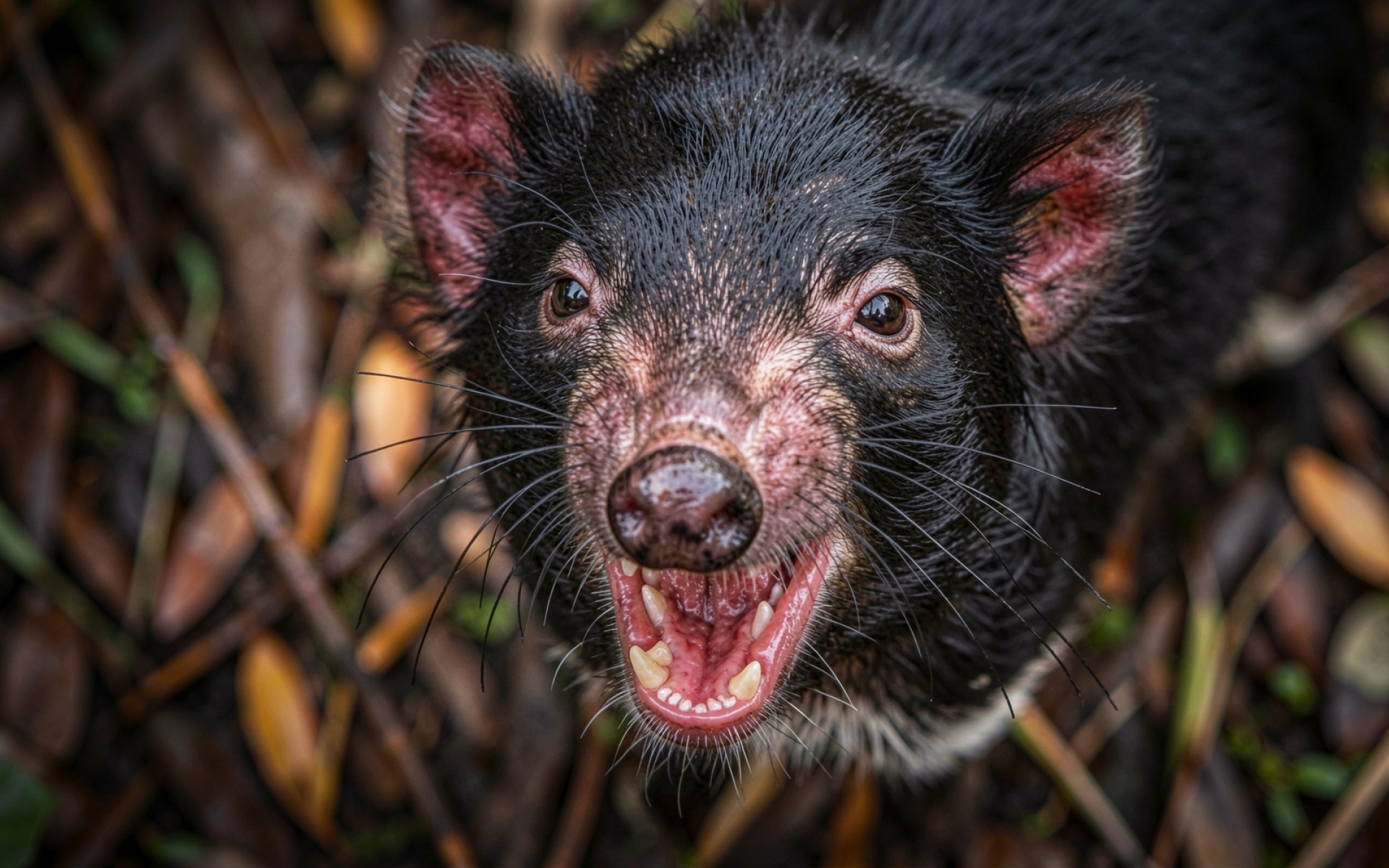 Тасманский дьявол темный агрессивный лесной фон