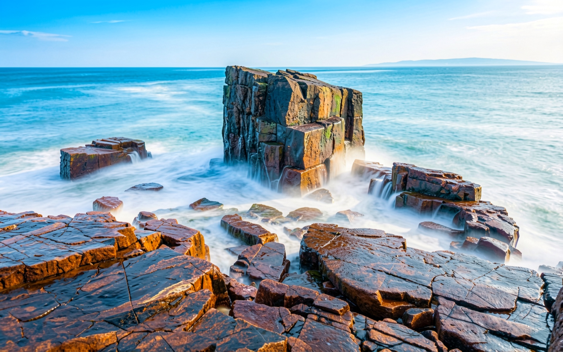 Базальтовые скалы в бирюзовом океане при дневном свете