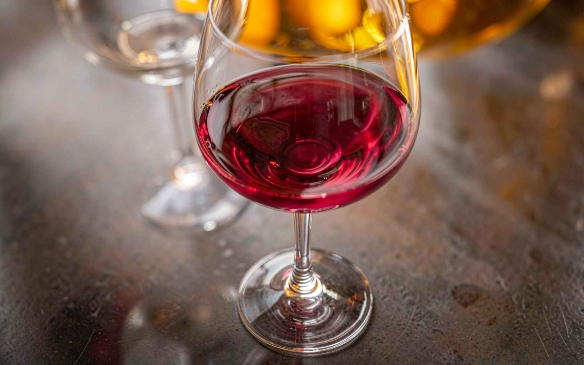 Бокал красного вина на темном столе