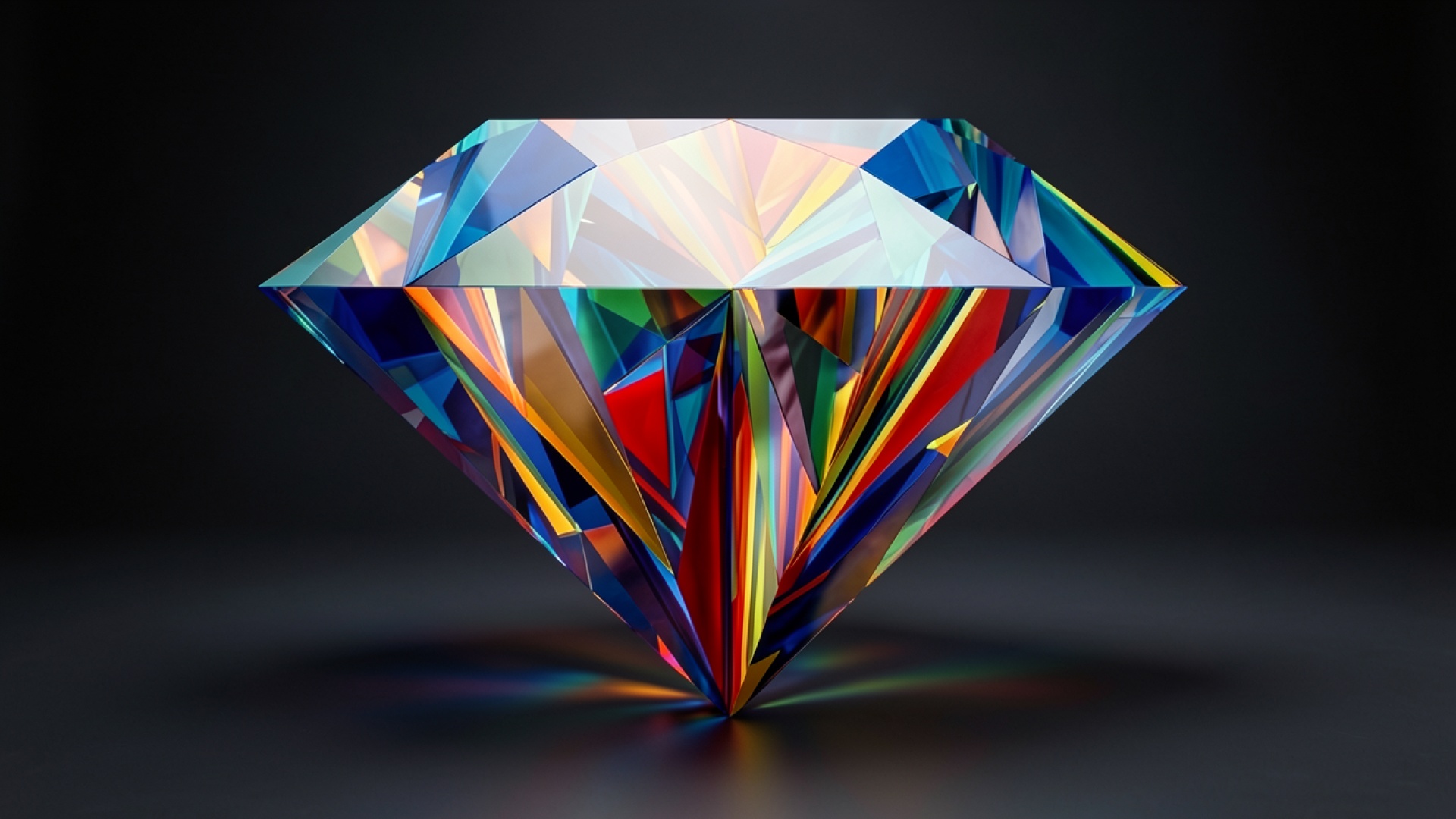 Радужный бриллиант на темном глянцевом фоне