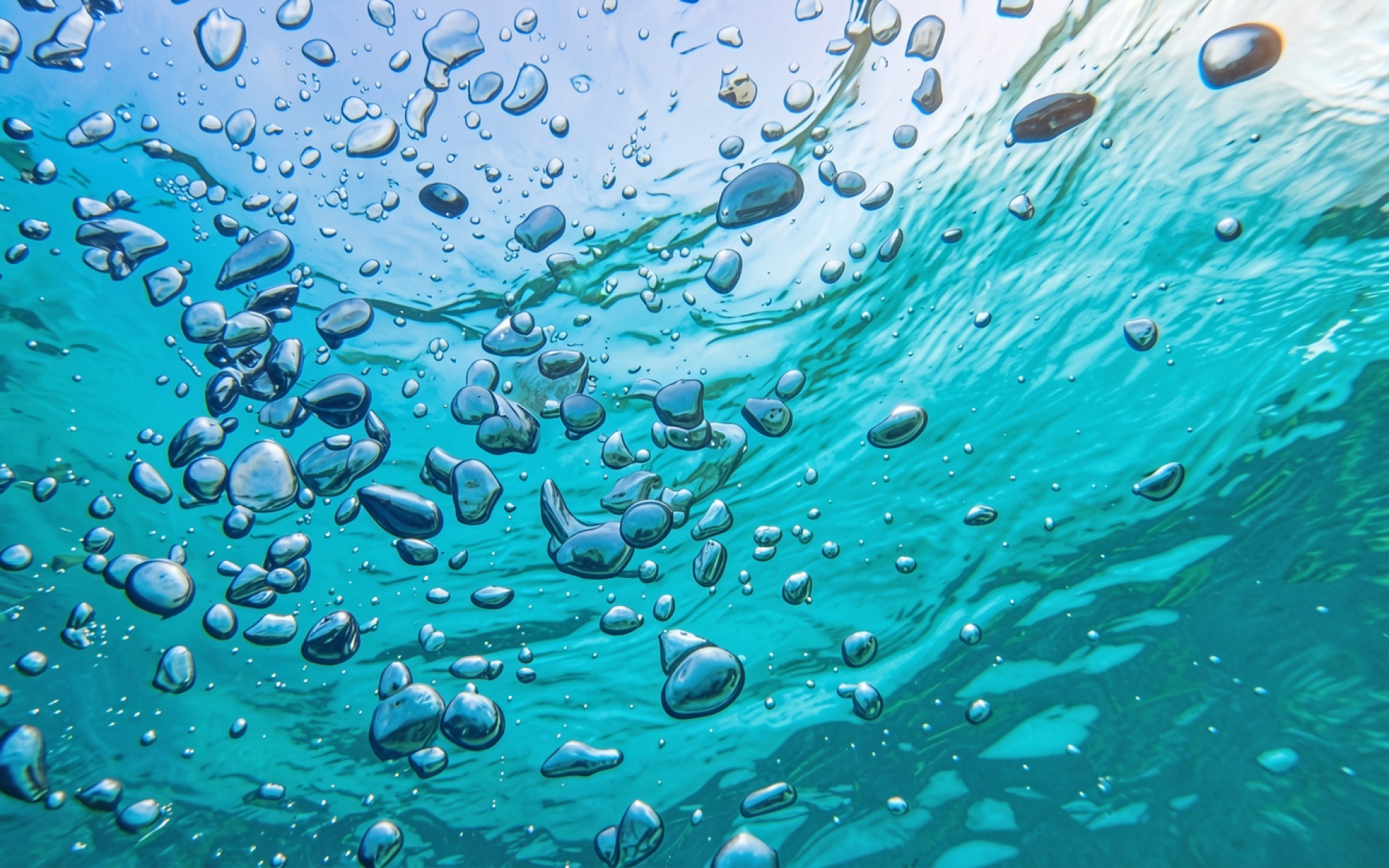 Пузырьки воздуха в голубой прозрачной воде