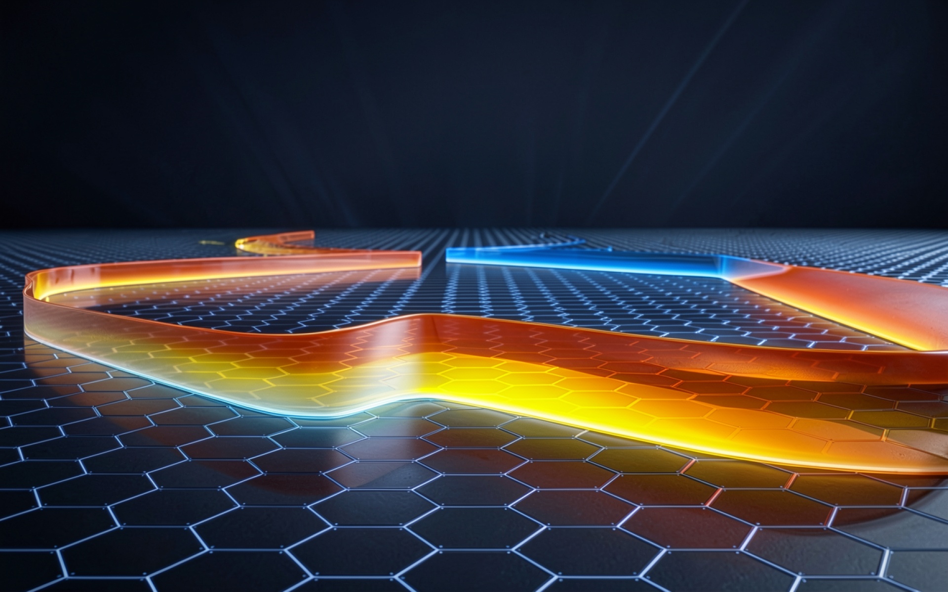 Абстрактная светящаяся лента на темном гексагональном фоне