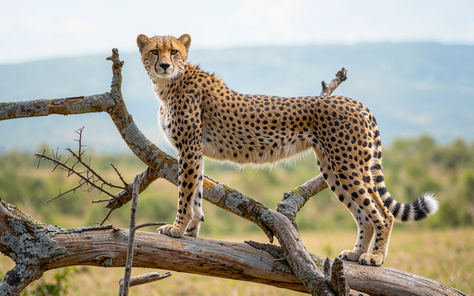 Гепард на сухом дереве в саванне