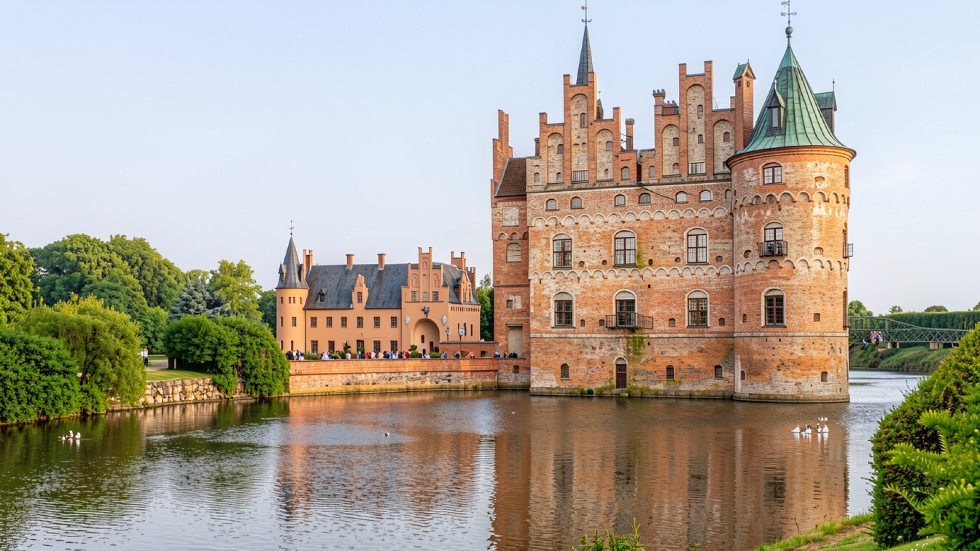 Кирпичный замок Глингенбю в вечернем солнечном свете