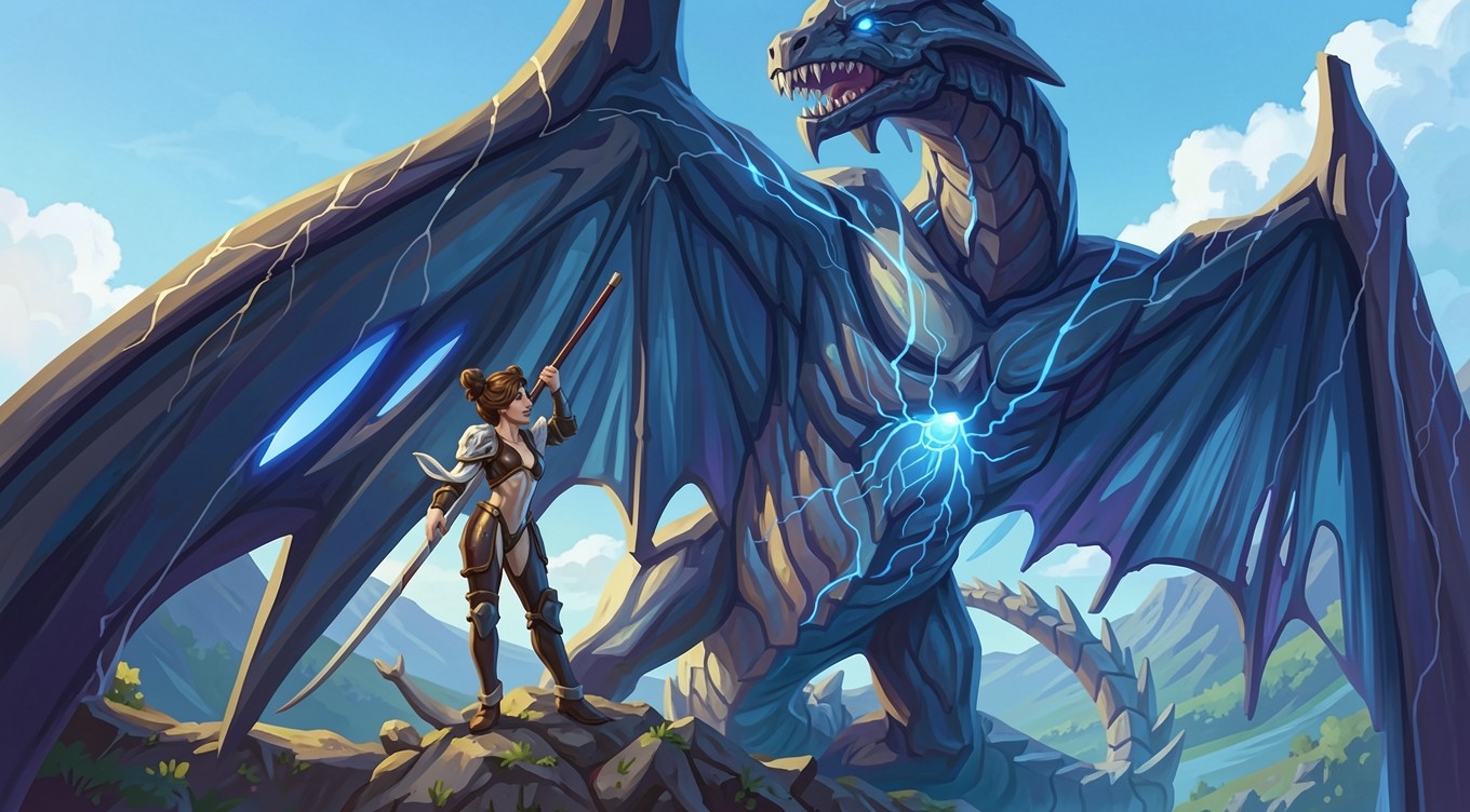 Синий кристаллический дракон и девушка воительница