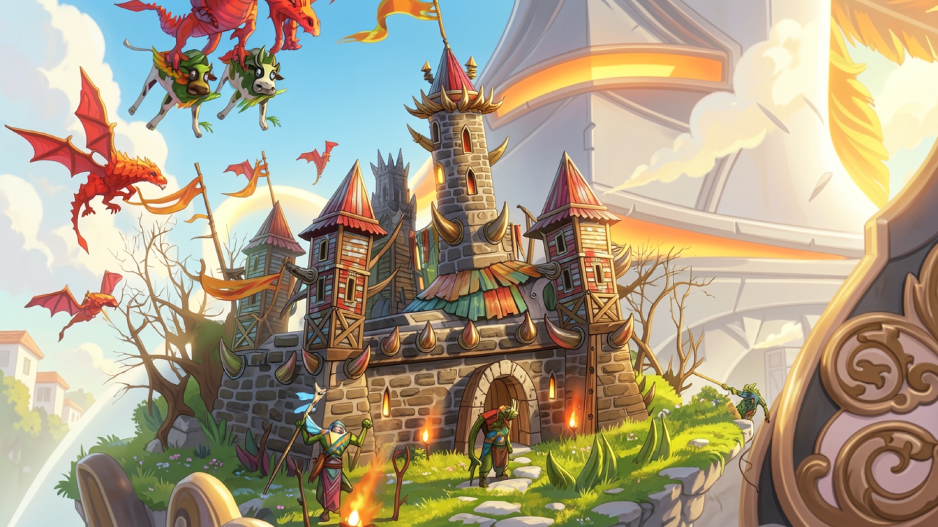 Замок гоблинов с красными драконами в фэнтези стиле