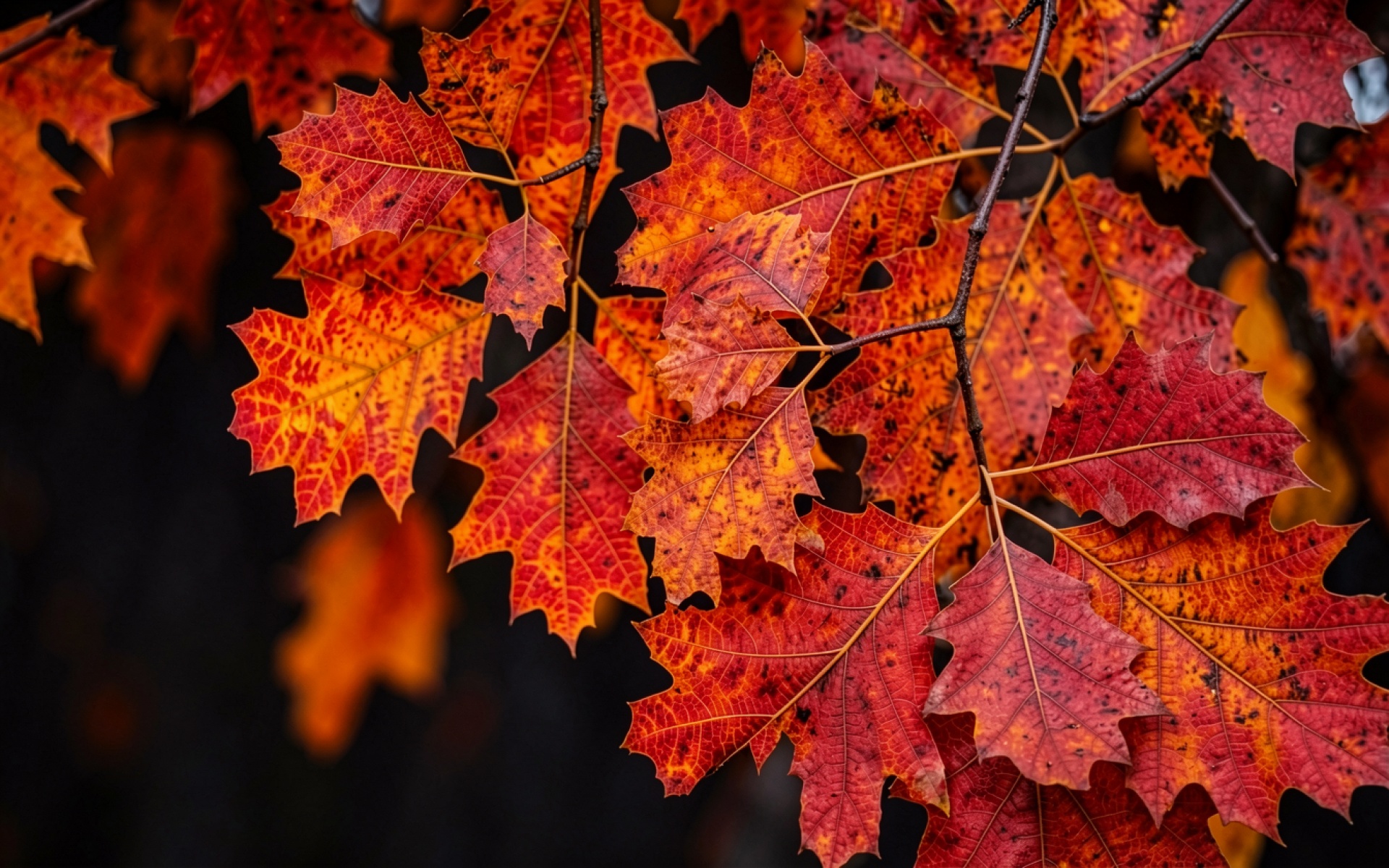 Осенние листья дуба красного и оранжевого цвета
