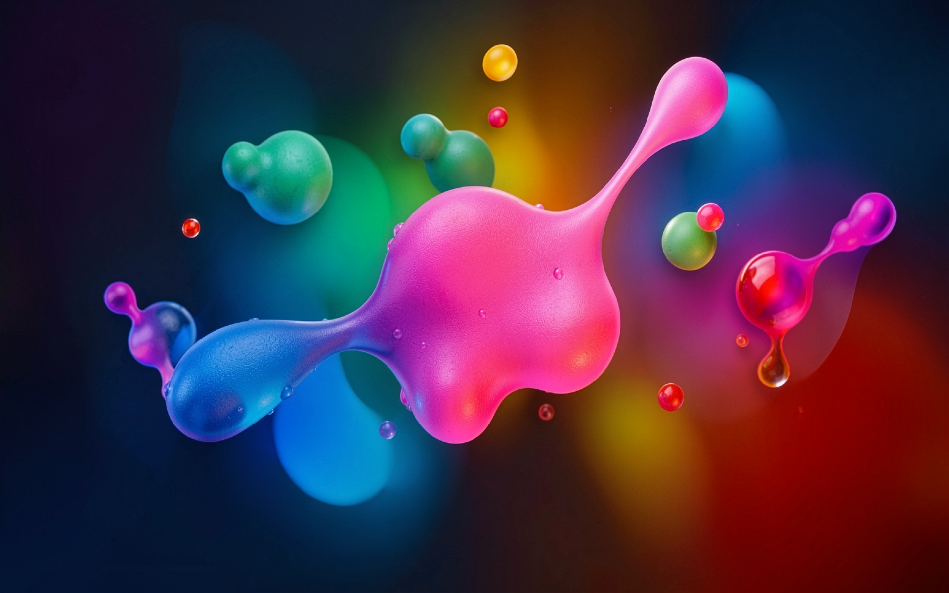 Абстрактные разноцветные жидкие капли в темном пространстве