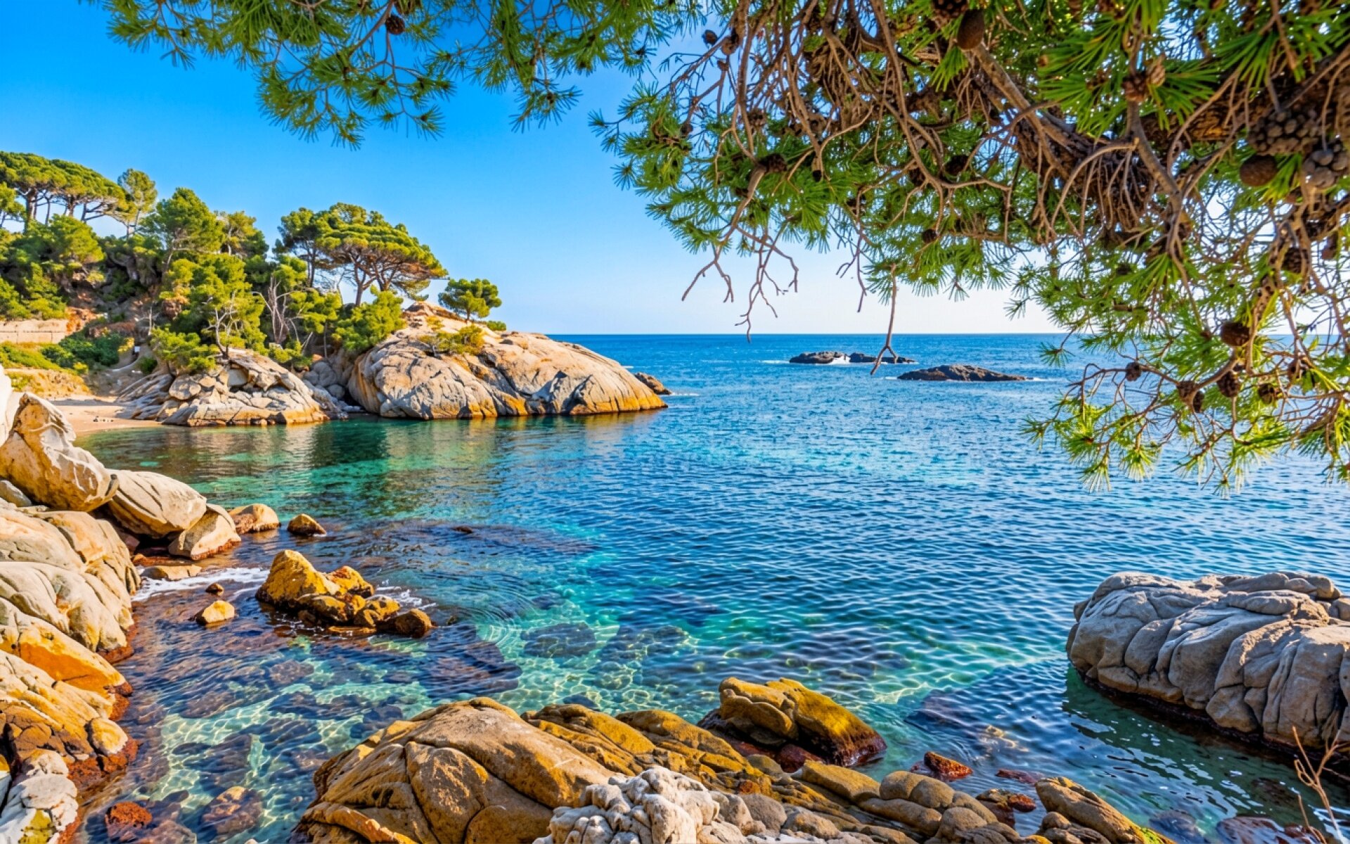 Бирюзовый залив с соснами и скалами