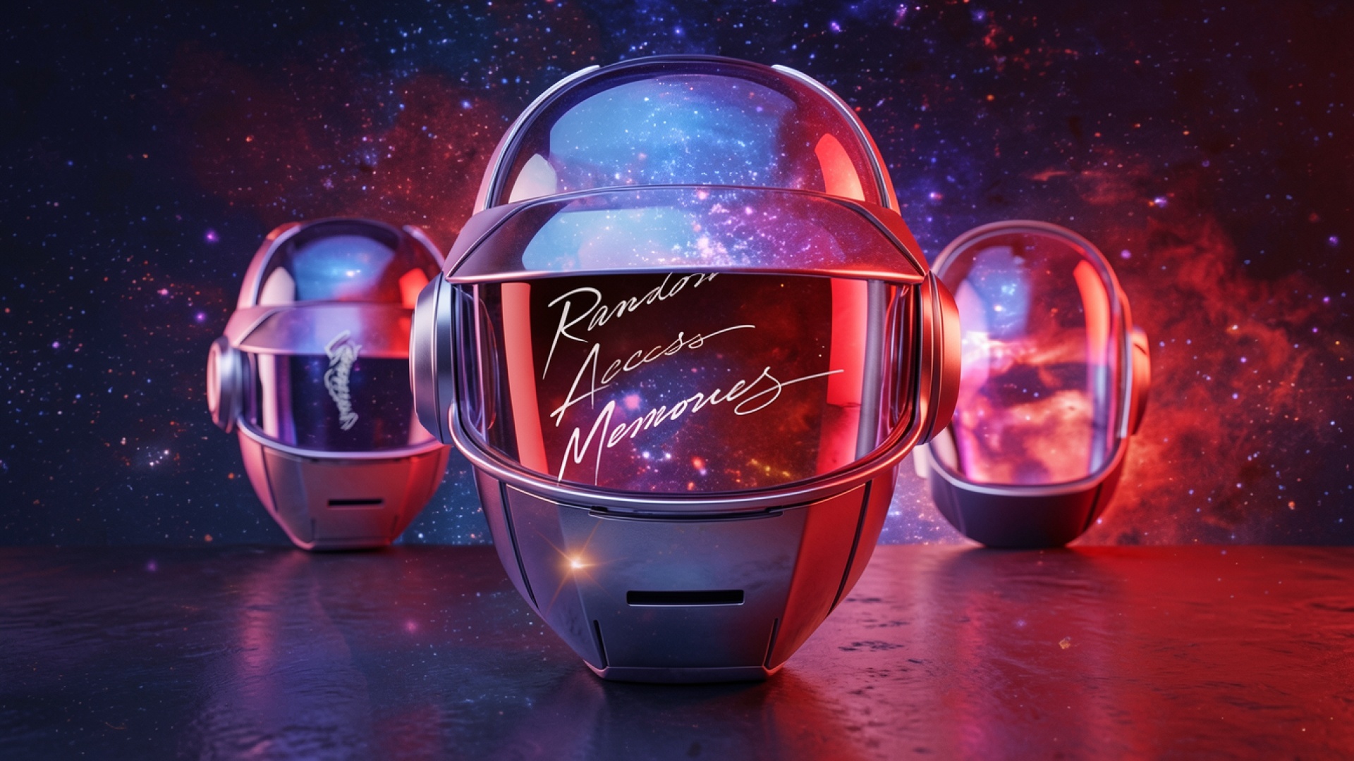 Космические шлемы в неоновом свете звездного неба