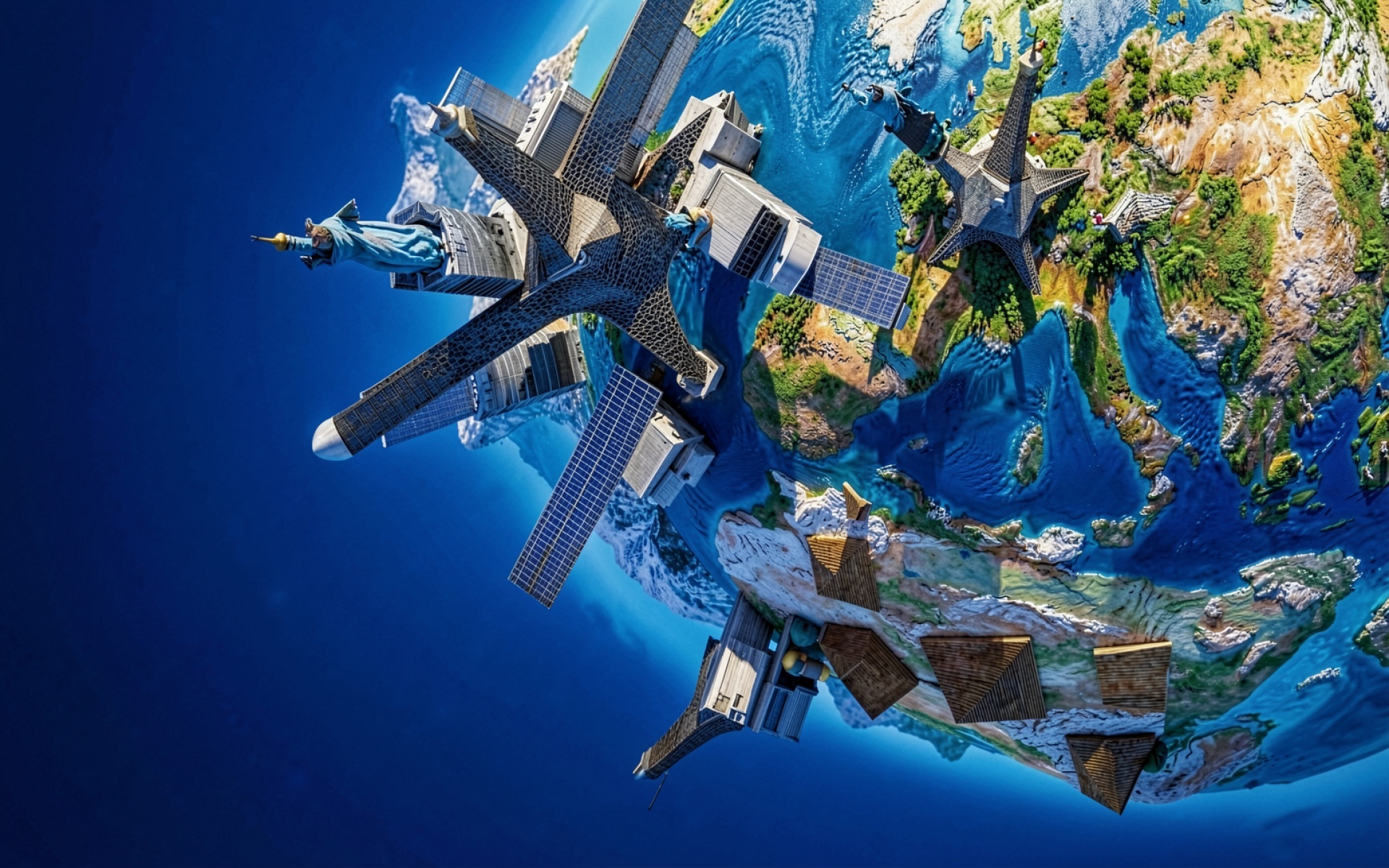 Сюрреалистичный коллаж мировых достопримечательностей на Земле