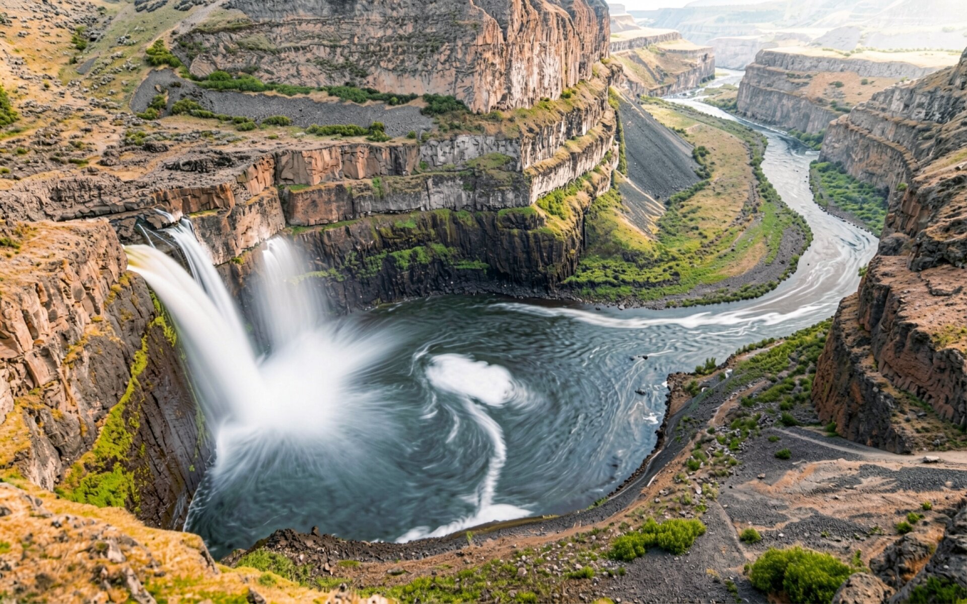 Водопад Паллус в каньоне при дневном свете