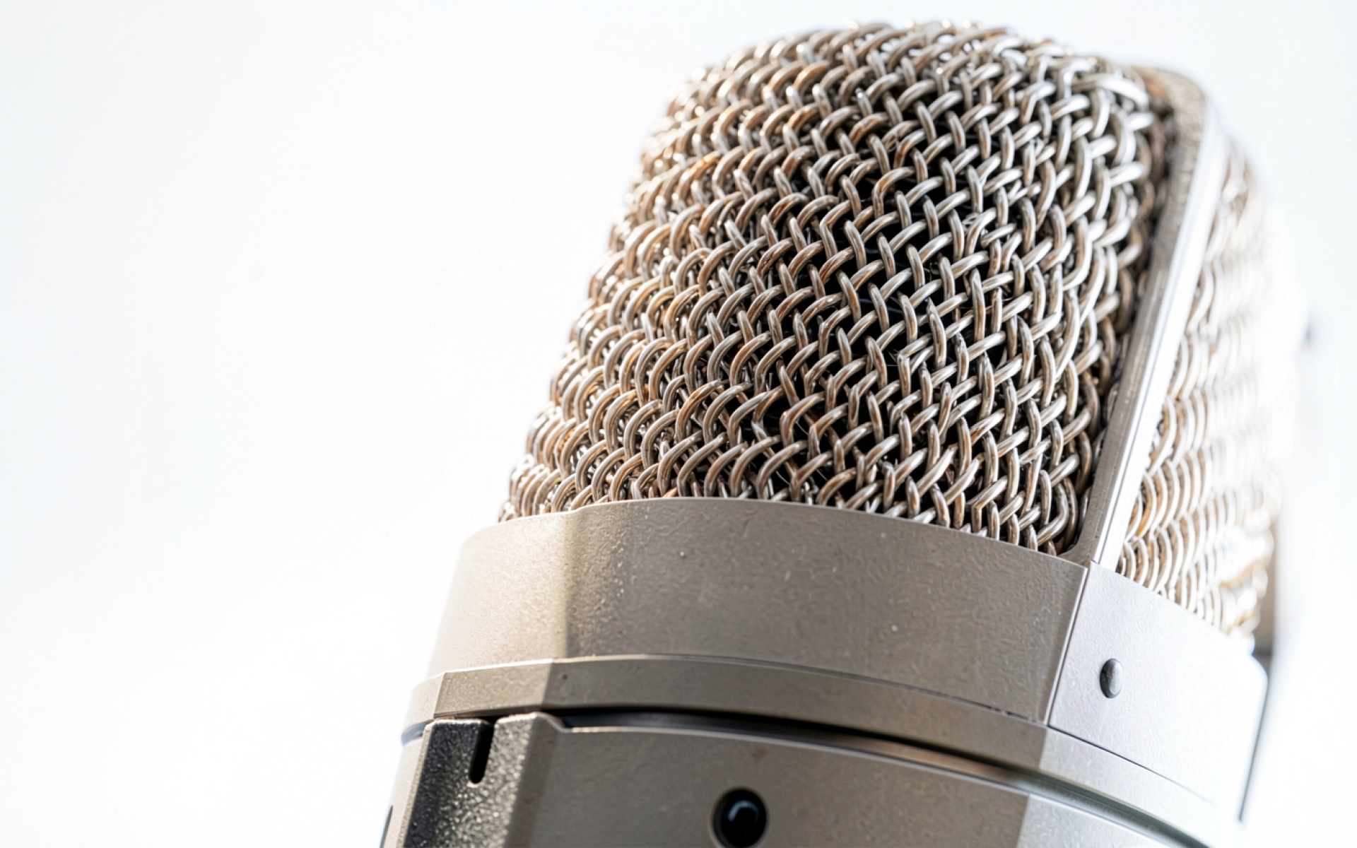 Студийный конденсаторный микрофон серебристый металлический фон