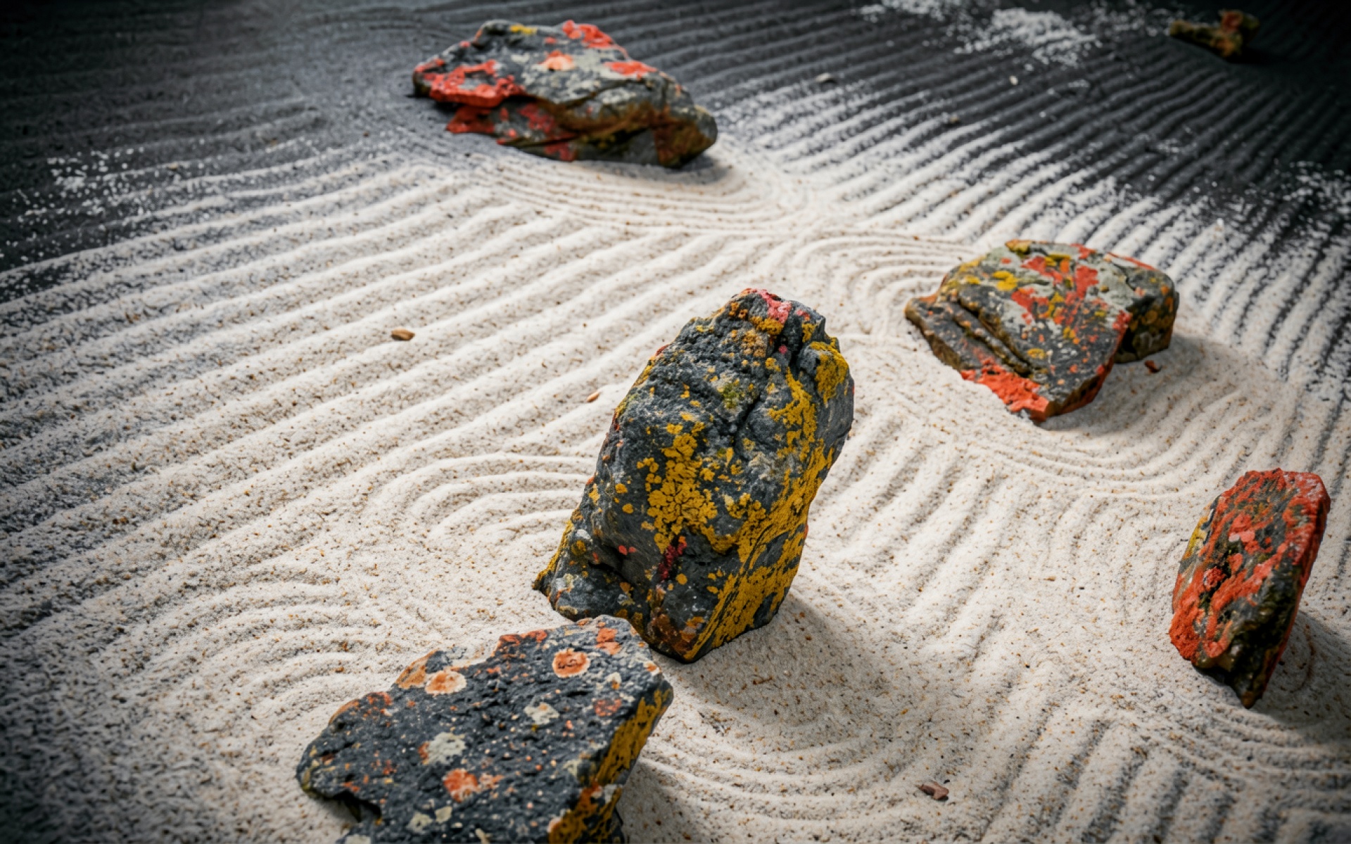 Японский сад камней с цветным лишайником