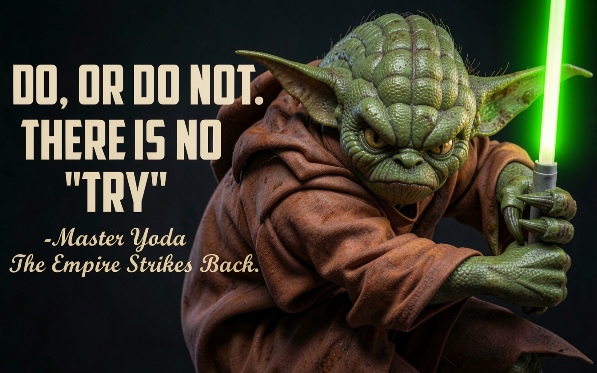 Магистр Йода с зеленым световым мечом в темном окружении