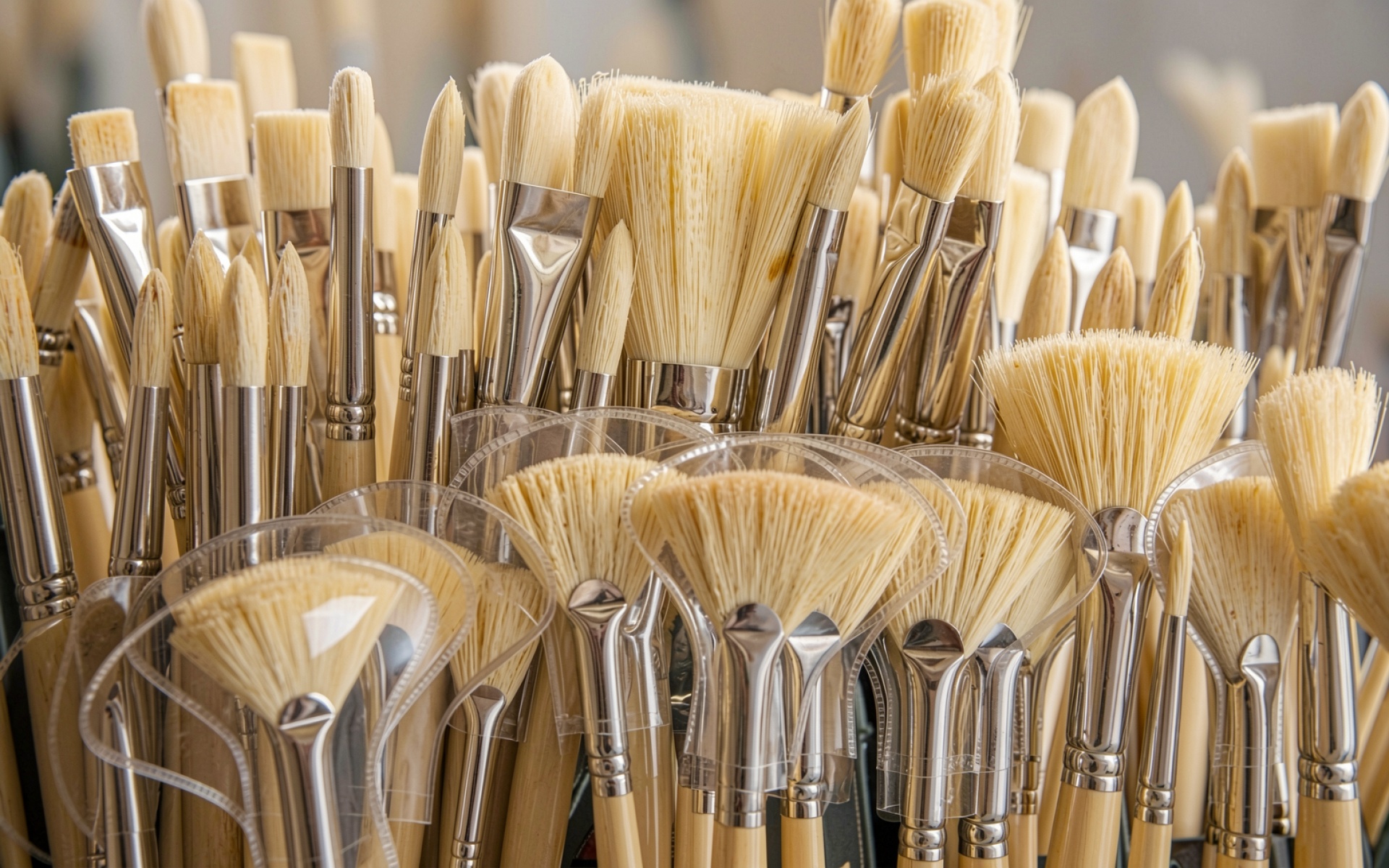 Набор художественных кистей в светлой мастерской