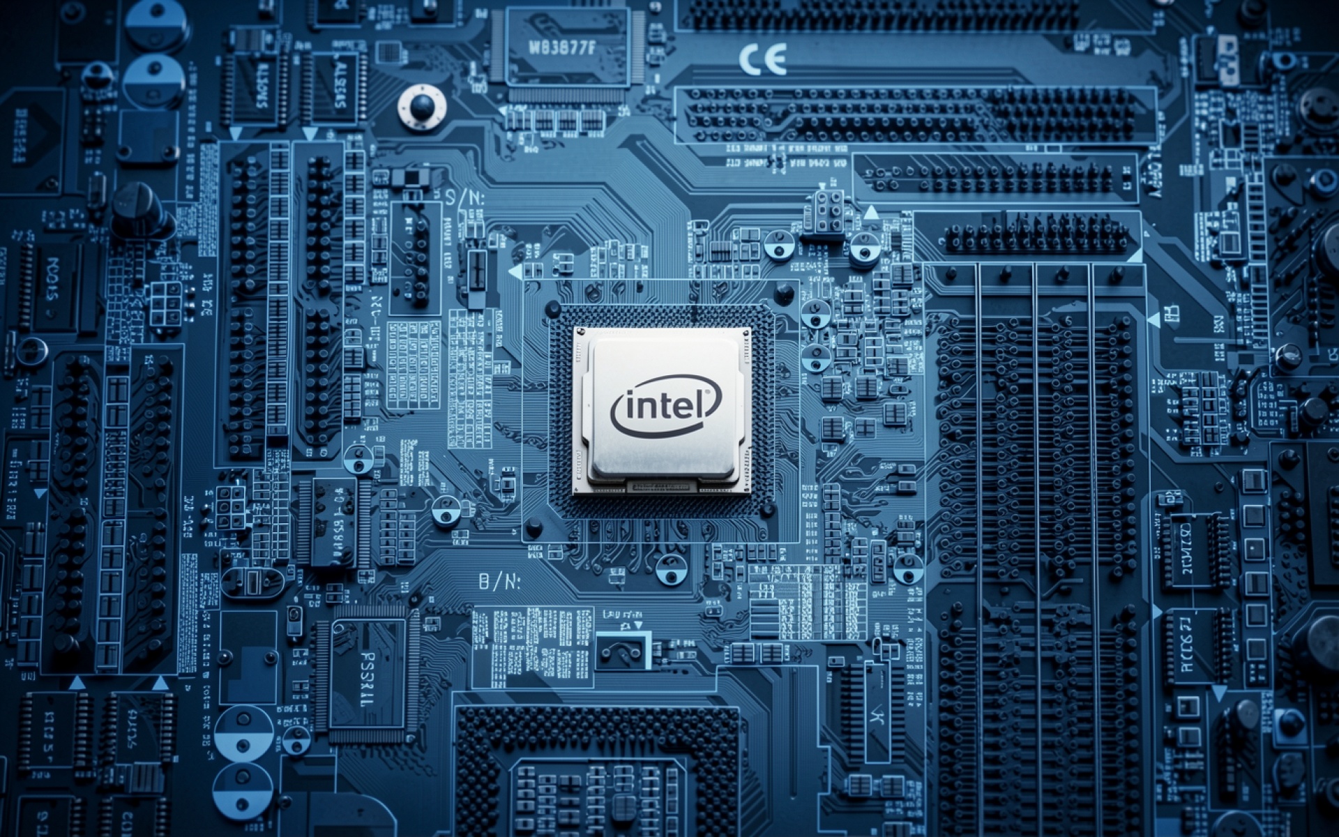 Процессор Intel на синей материнской плате