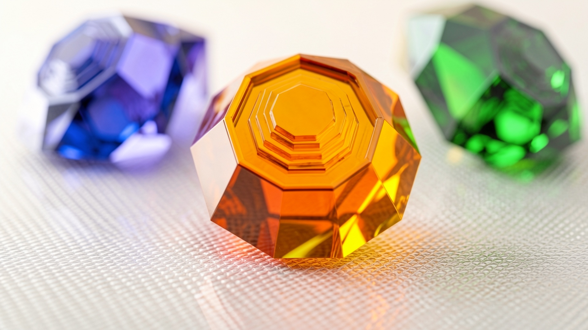 Цветные стеклянные многогранники на светлом фоне