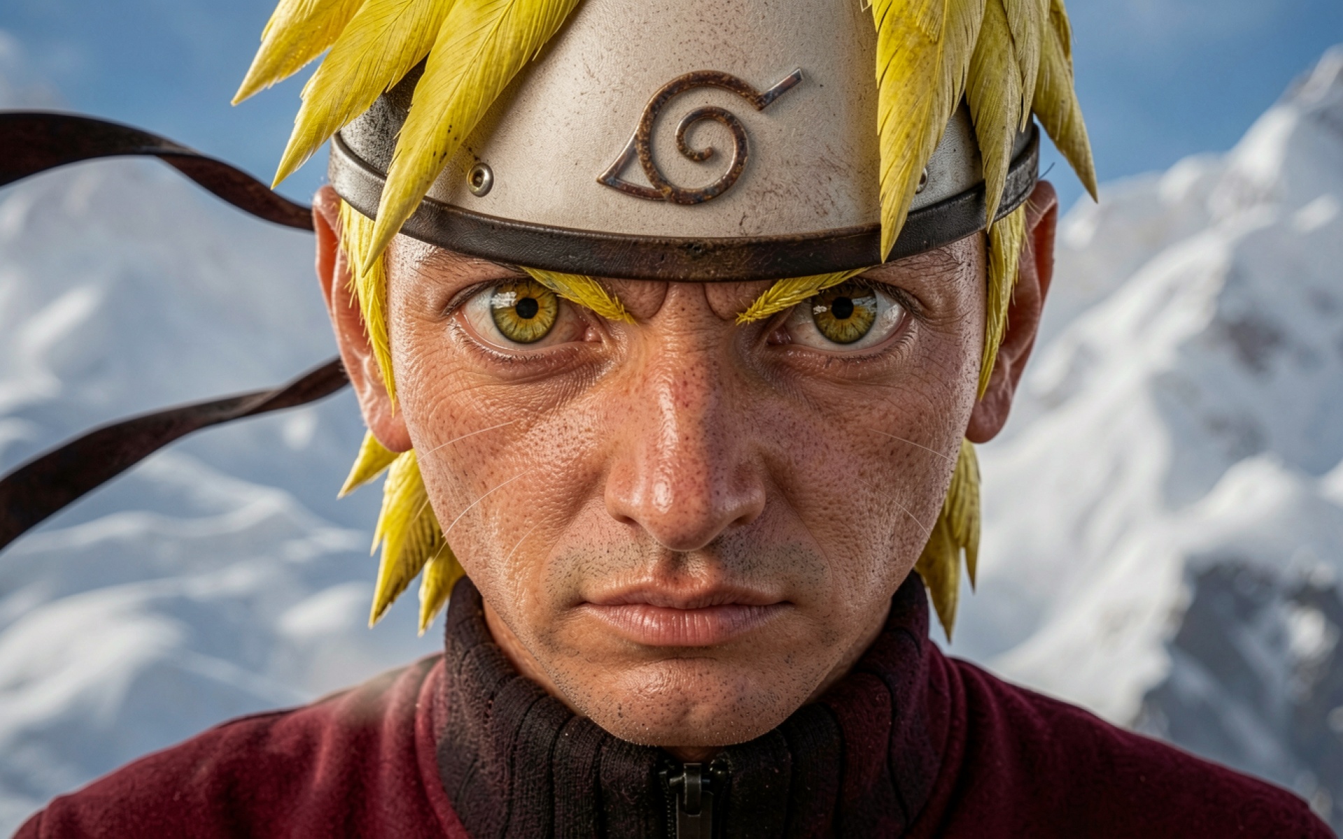 Реалистичный портрет Наруто в заснеженных горах