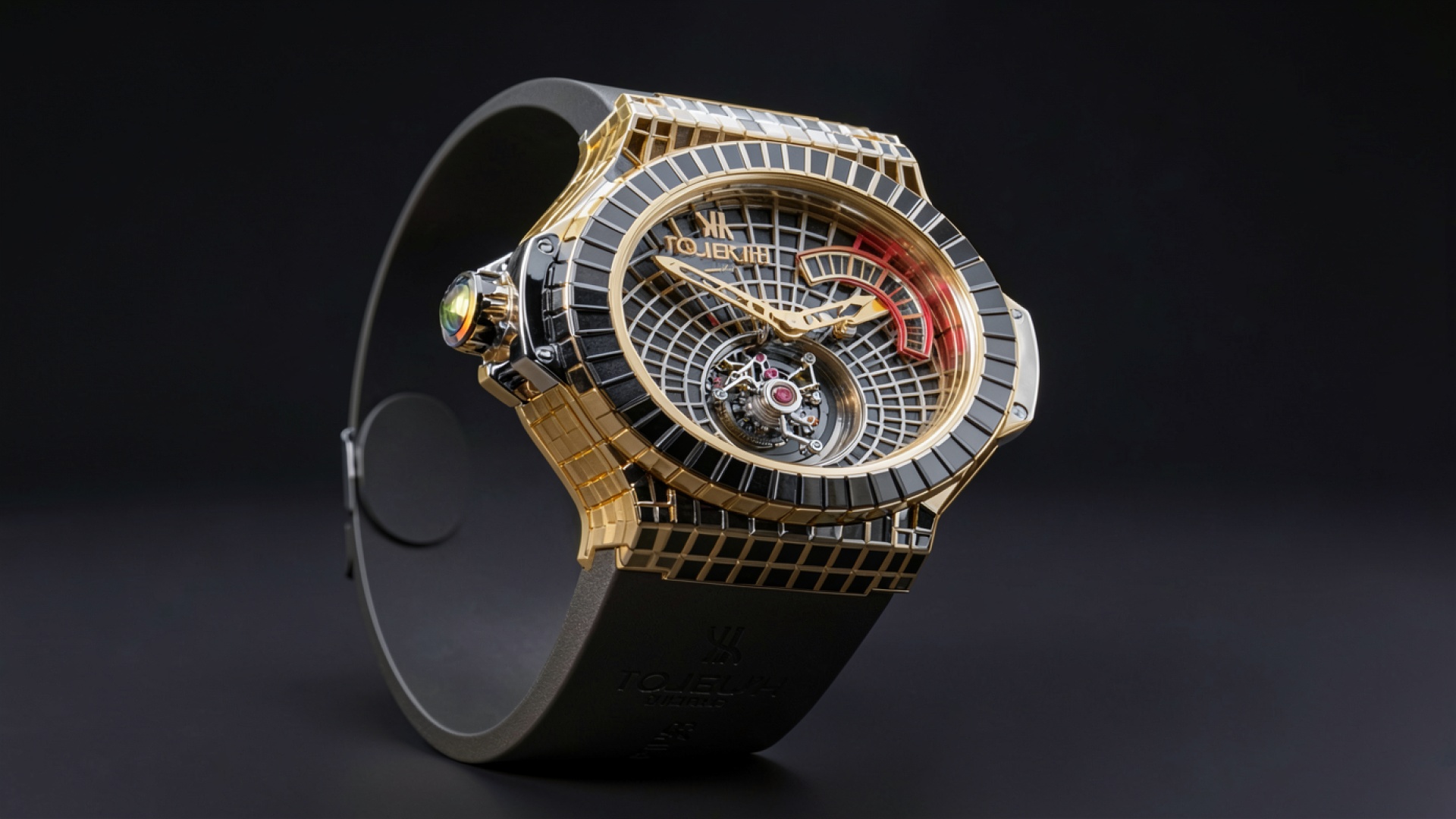 Золотые наручные часы на черном фоне