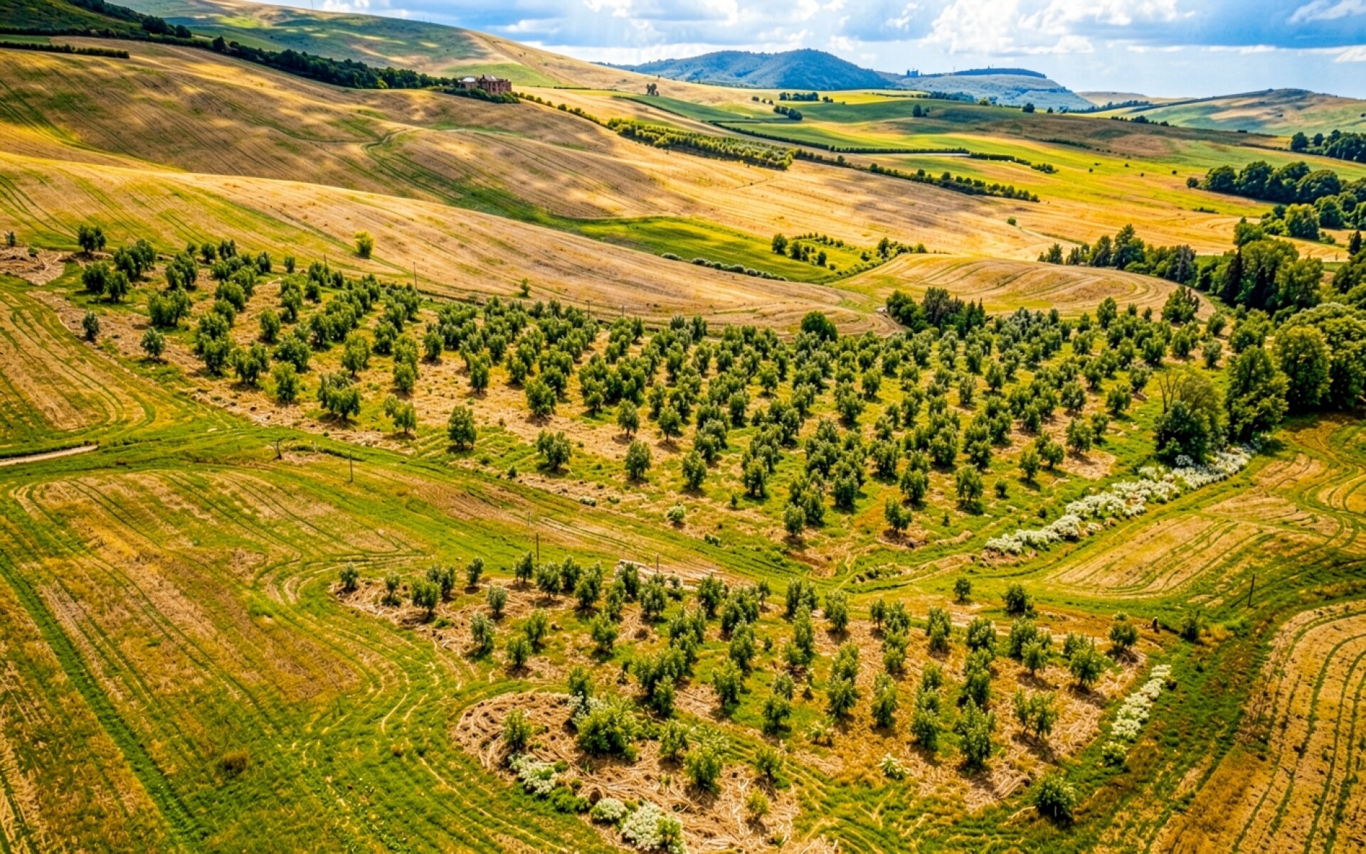 Тосканский пейзаж с оливковым садом при дневном свете
