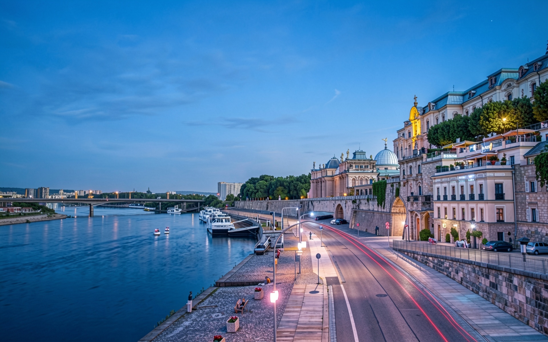 Вечерний вид на набережную города Пассау