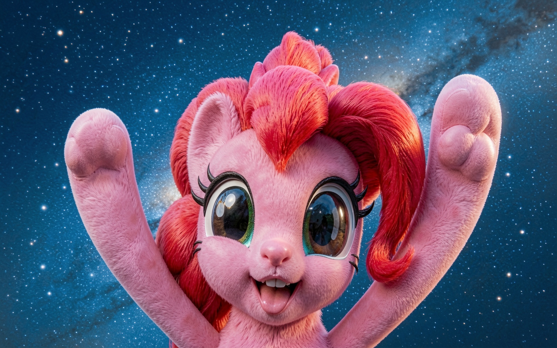 Розовая пони Пинки Пай на фоне звездного неба
