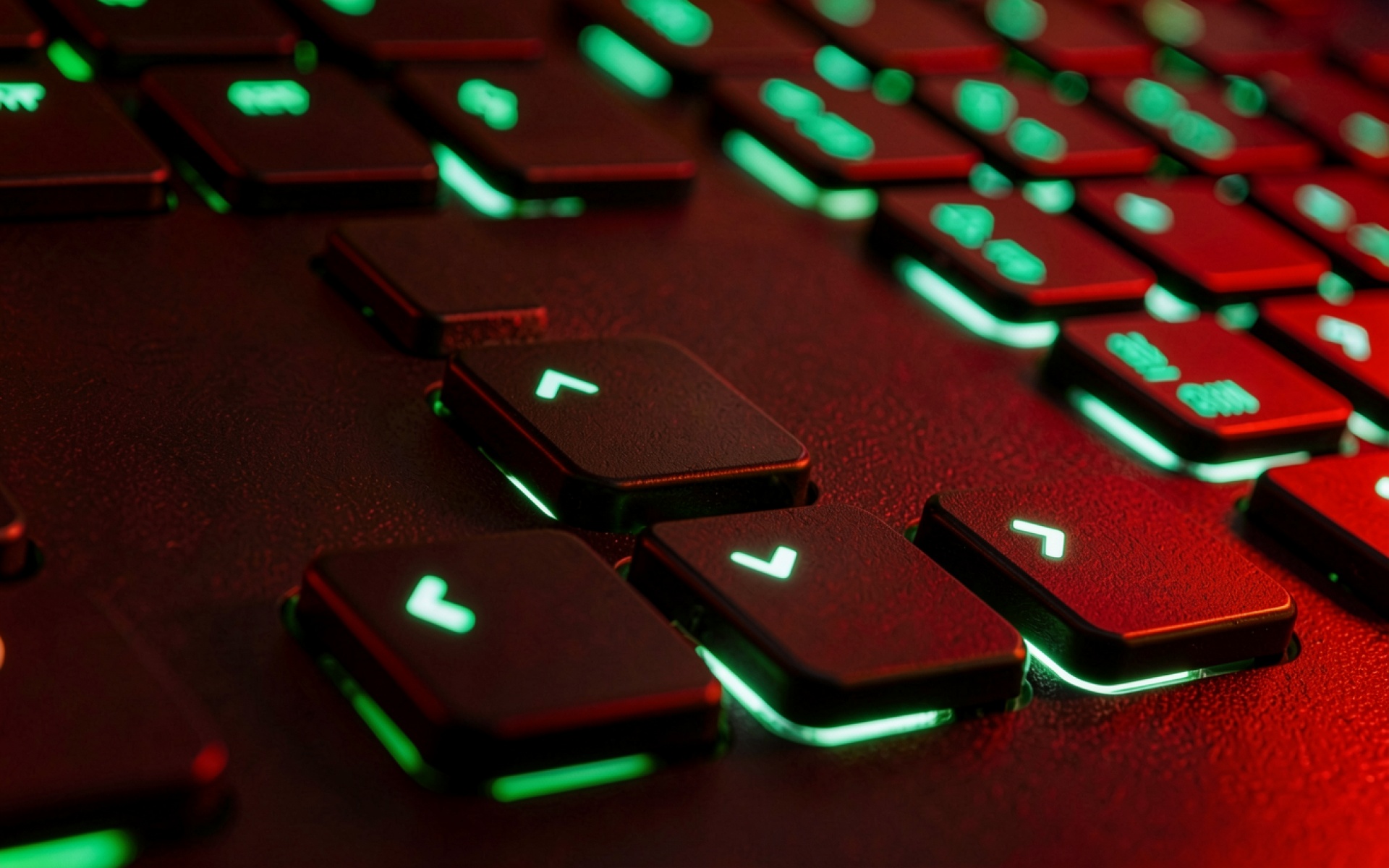 Механическая клавиатура с зеленой подсветкой в темноте
