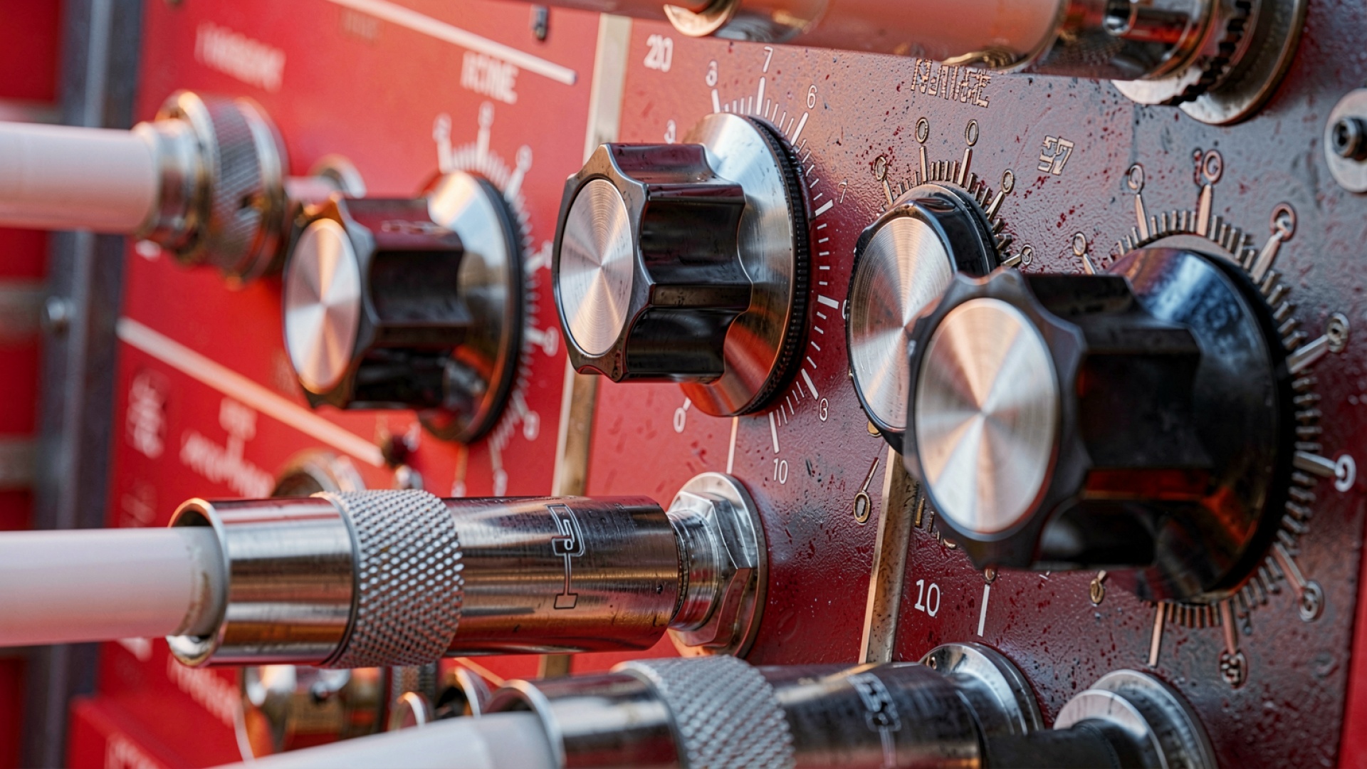 Красная панель управления с металлическими регуляторами