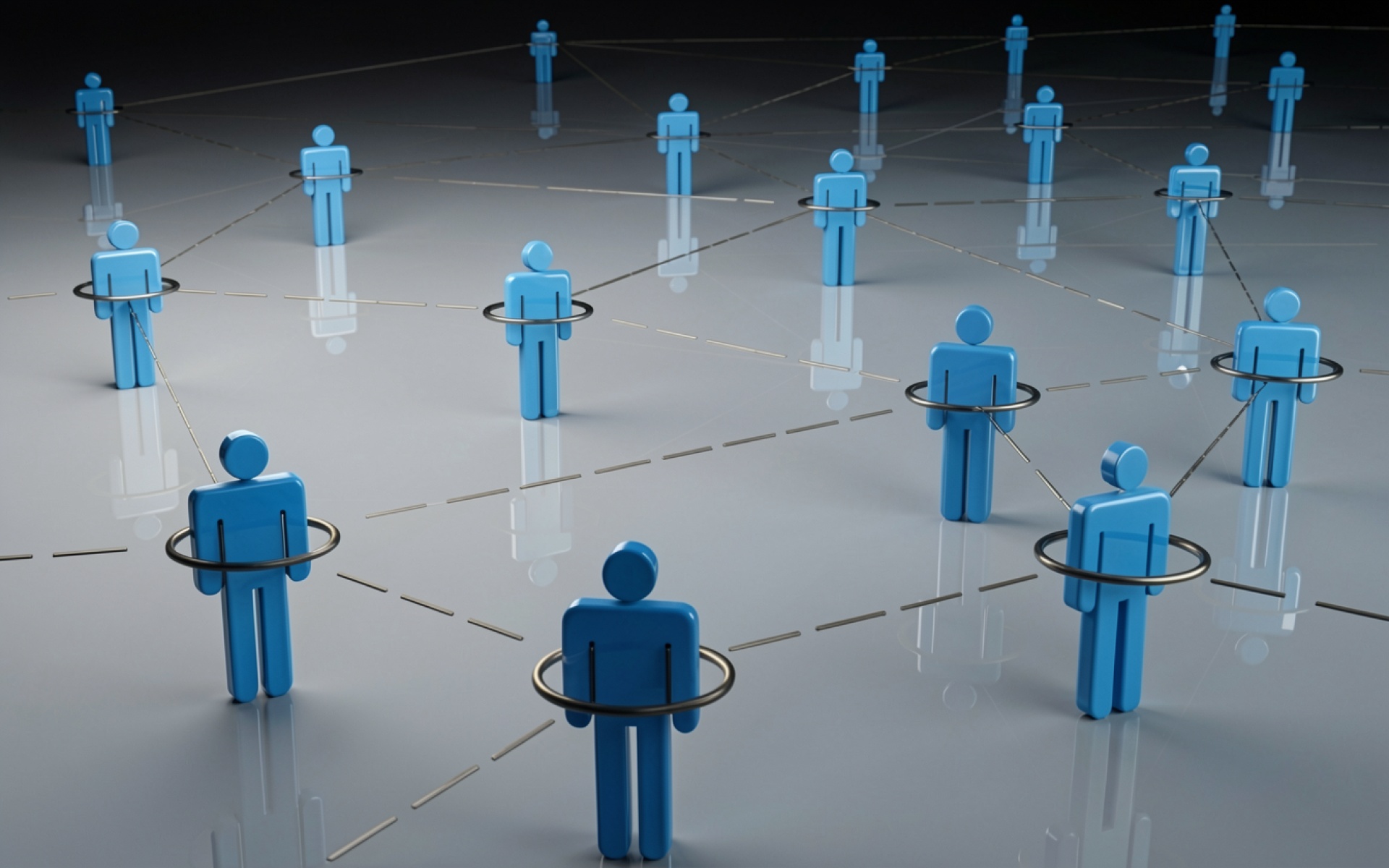 Синие 3D фигуры людей в сетевой структуре