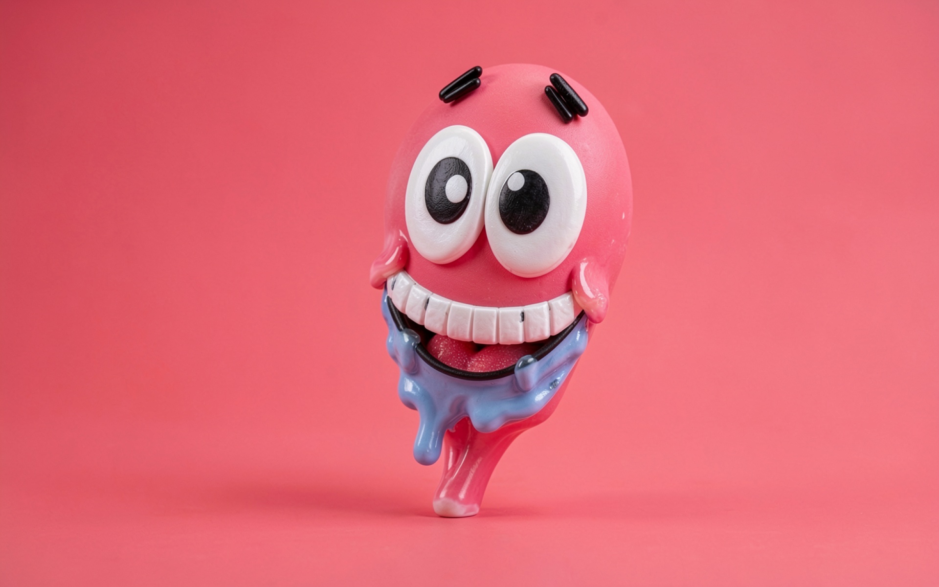 Розовый 3D персонаж с голубой слизью
