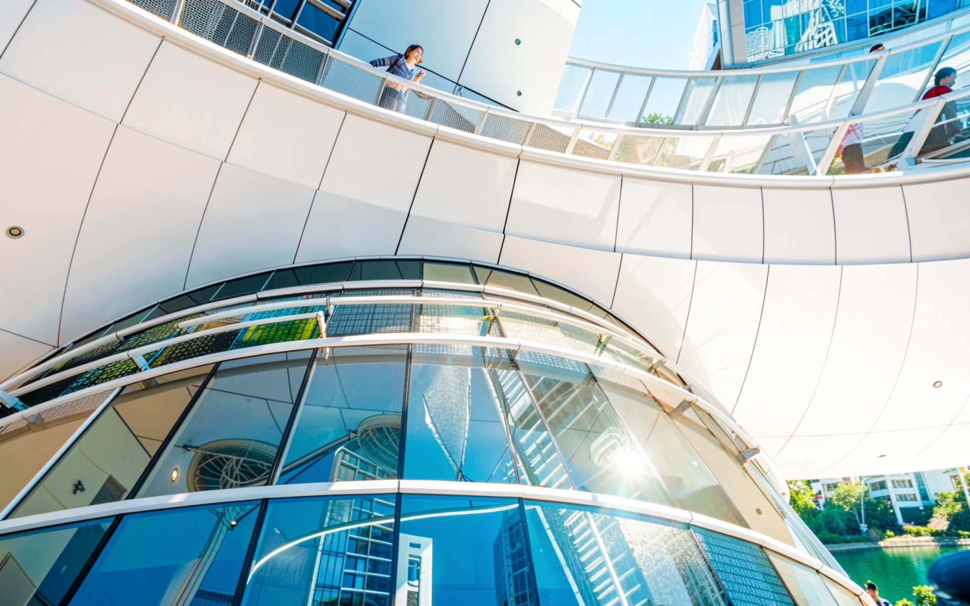 Современное здание из стекла и белого металла
