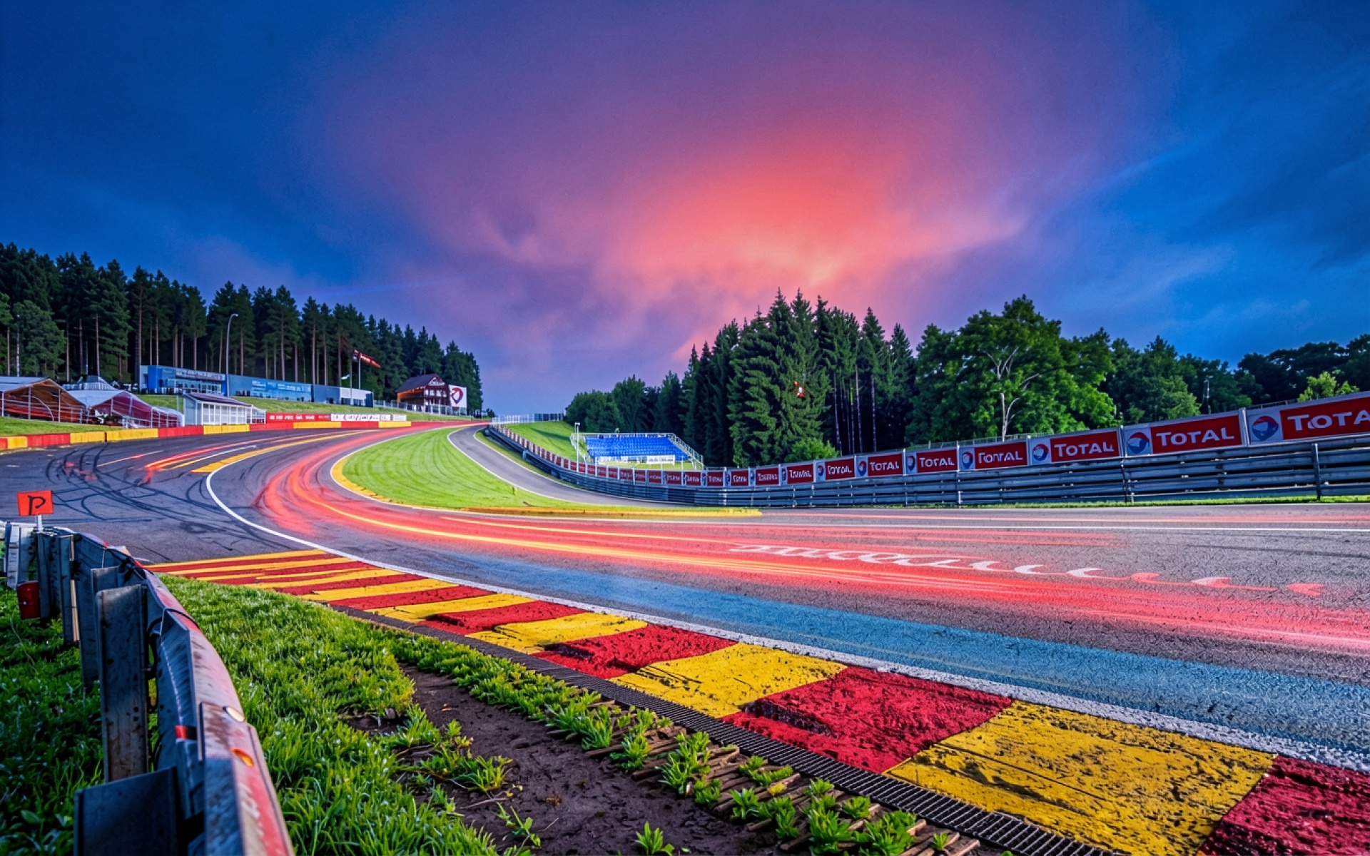 Гоночная трасса Спа-Франкоршам в сумерках с размытием