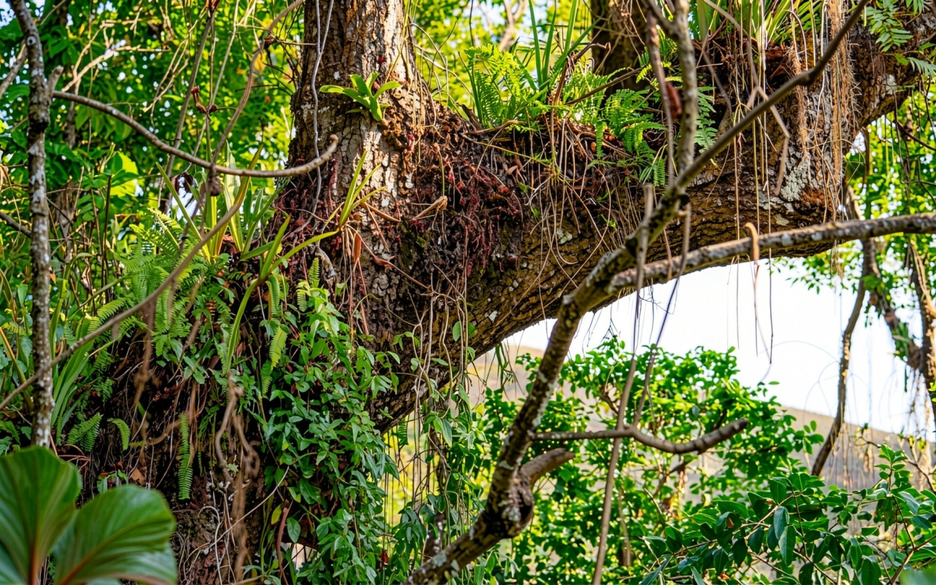 Старое дерево с папоротниками в тропическом лесу