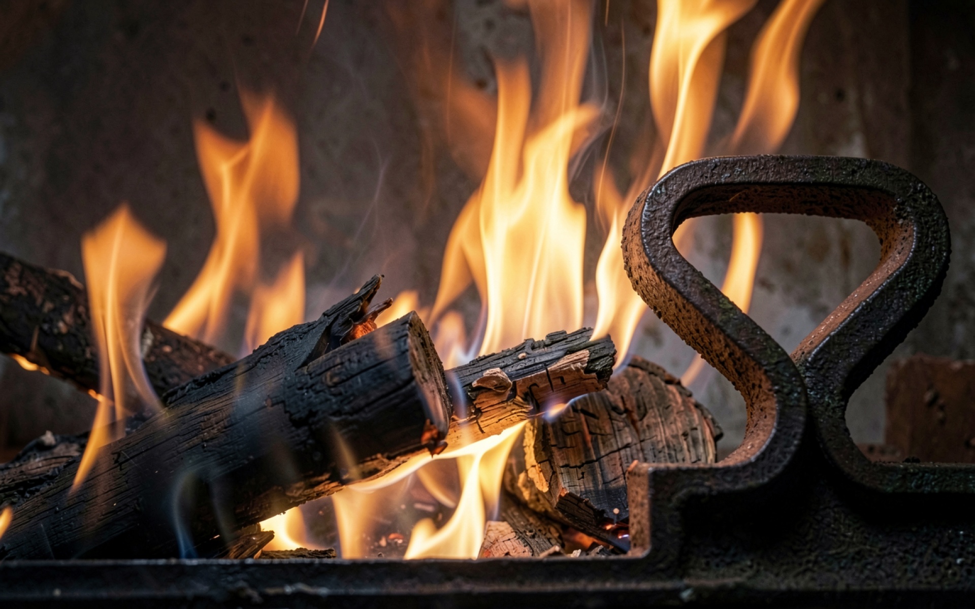 Горящие дрова в старом чугунном камине