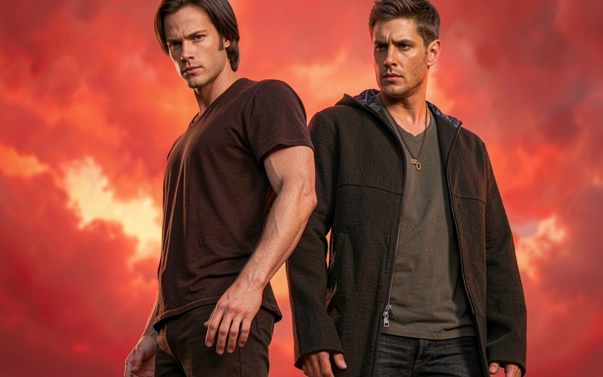 Сэм и Дин Винчестеры на красном фоне