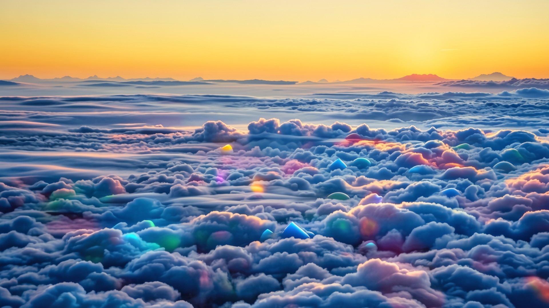 Сюрреалистичные синие облака в золотом закатном небе