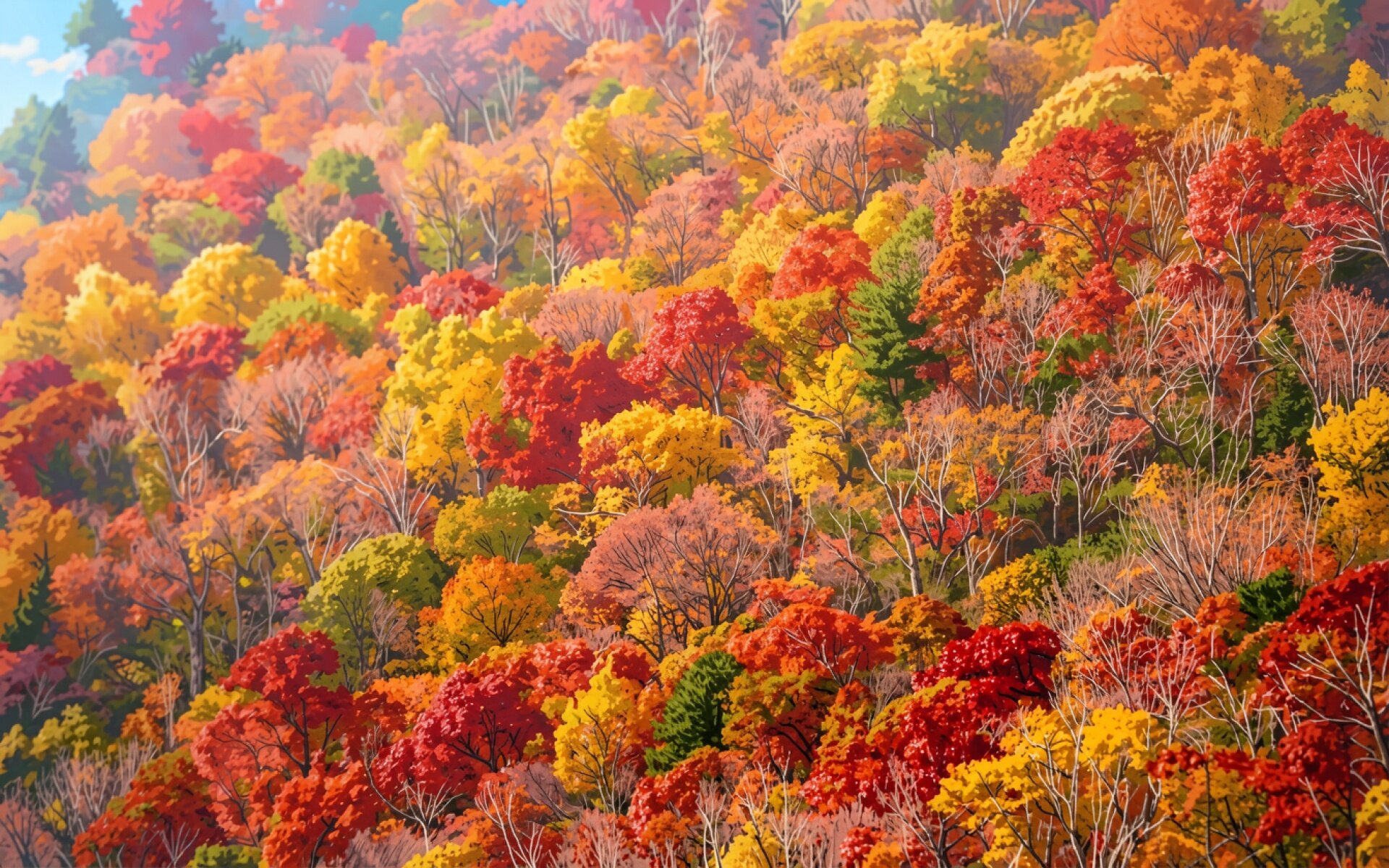 Осенний лес в теплых красных тонах