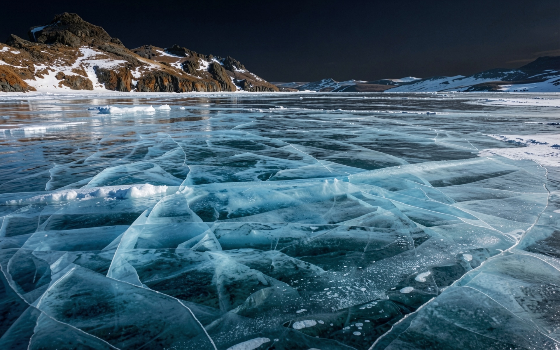 Замерзшее озеро с трещинами в горах