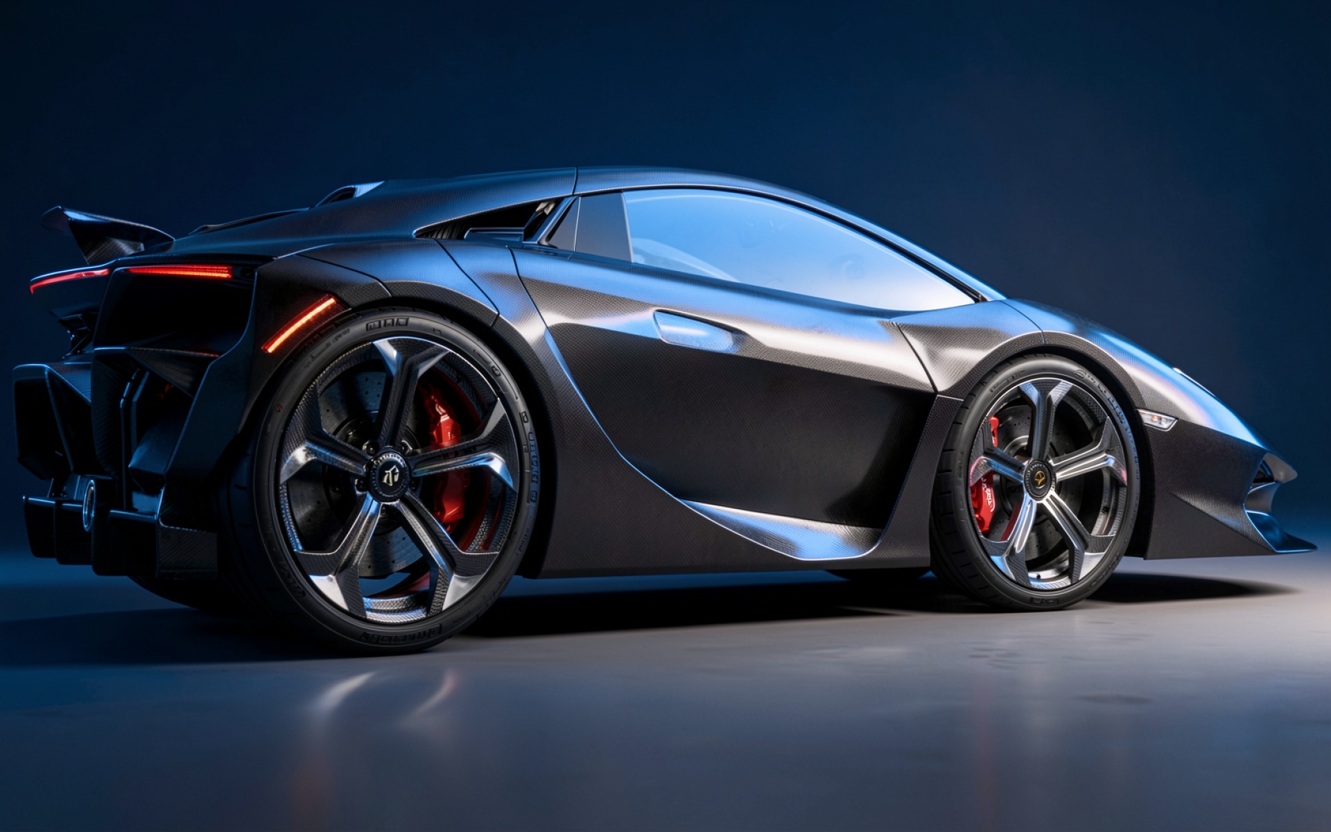 Спортивный гиперкар из углеволокна в синем студийном освещении