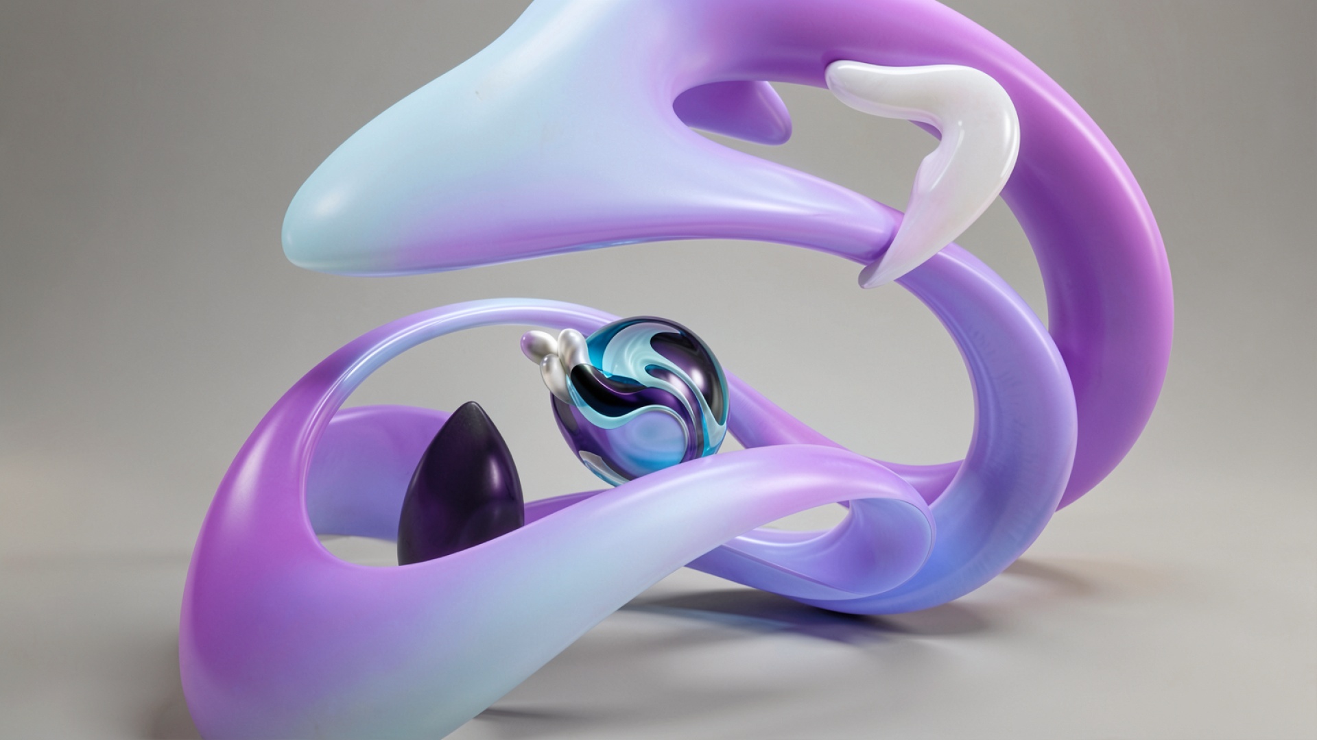 Абстрактная 3D фигура фиолетово-голубых плавных форм