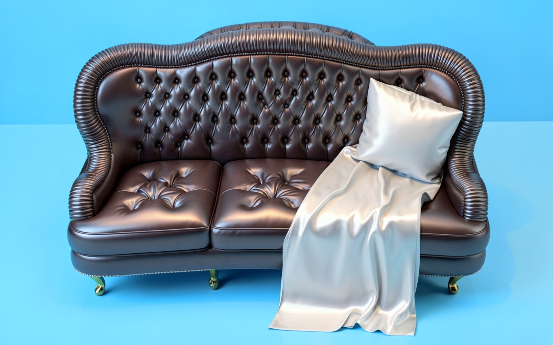 Кожаный коричневый диван с белым шелком