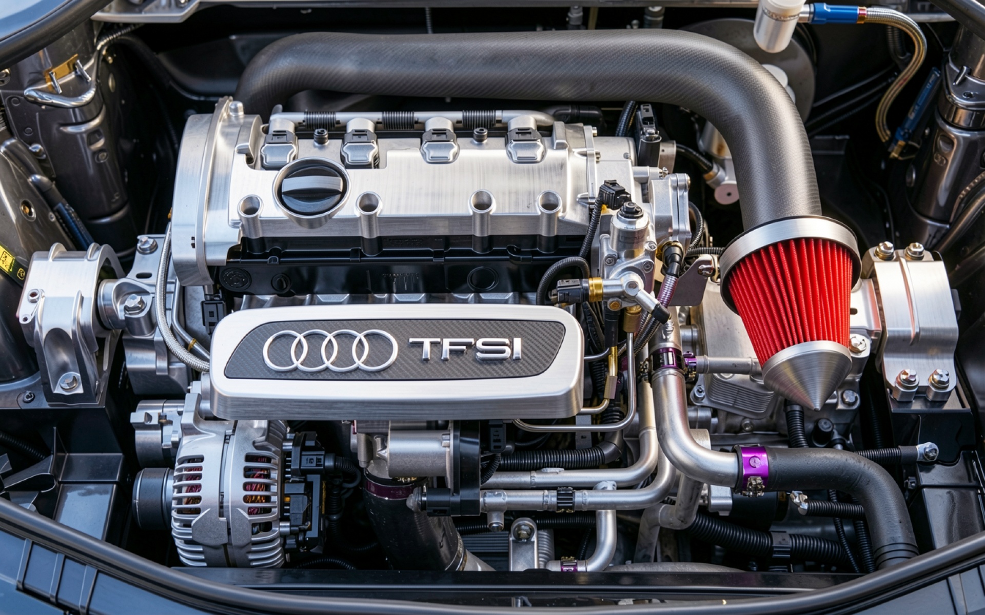 Двигатель Audi TFSI серебристый металлик красный фильтр