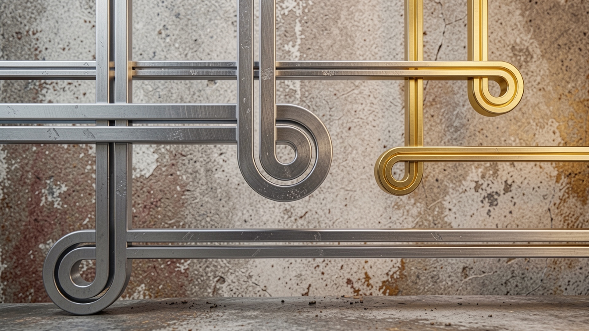 Абстрактные металлические трубки стального и золотого цвета