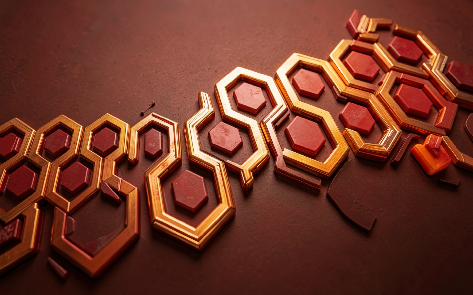 Золотые гексагоны красный фон абстрактный стиль