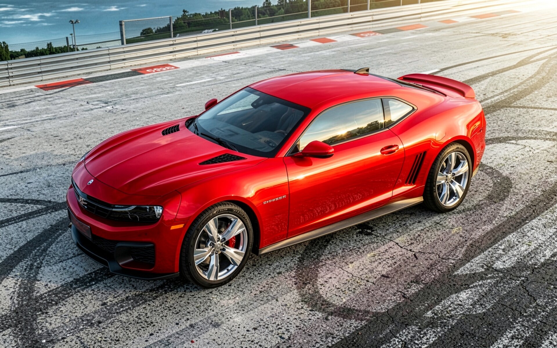 Chevrolet Camaro красный спортивный автомобиль гоночный трек