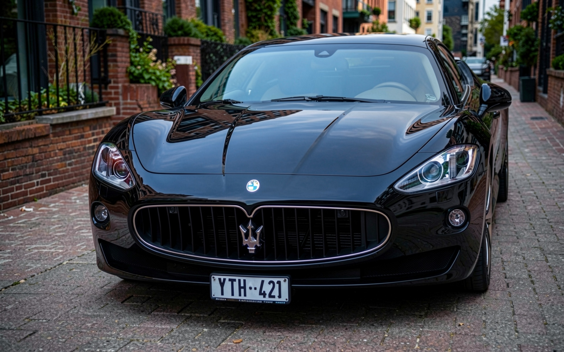 Черный автомобиль Maserati на кирпичной улице
