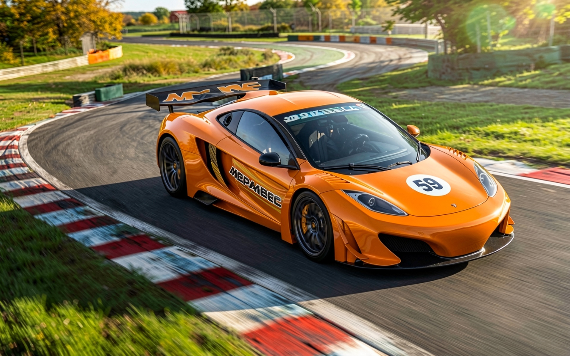 Оранжевый гоночный автомобиль McLaren на треке