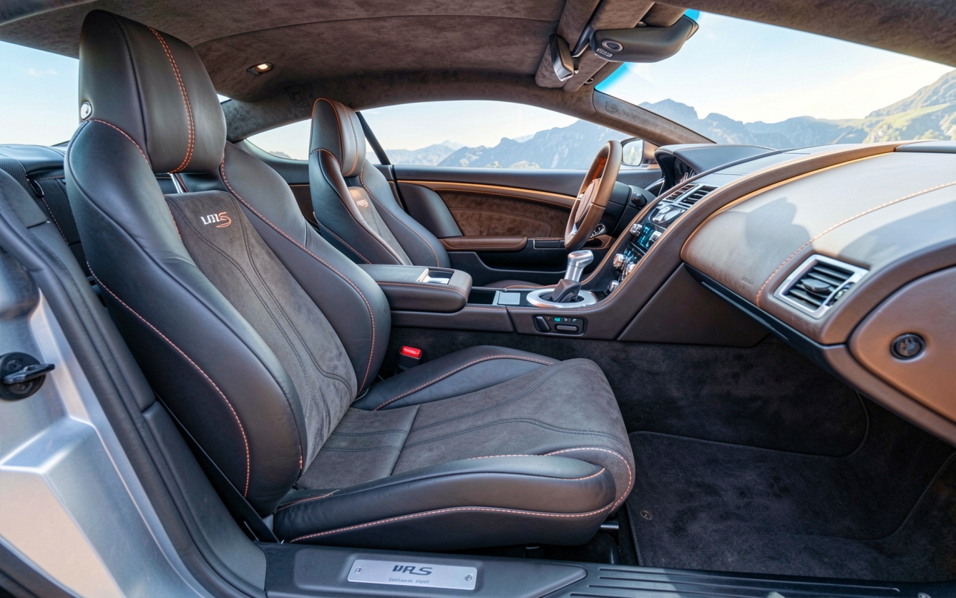 Интерьер автомобиля Porsche 918 Spyder черный кожаный салон