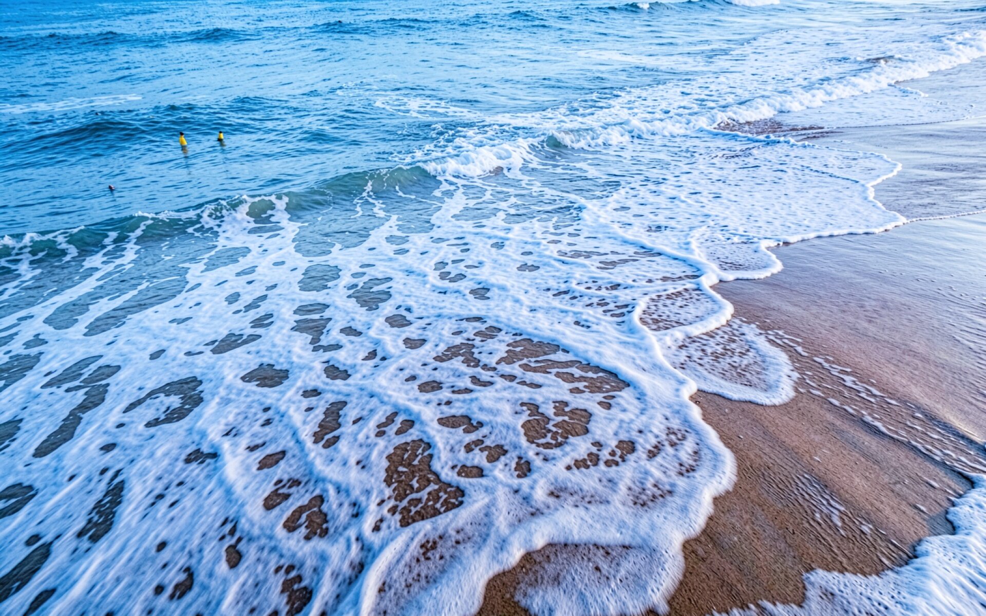 Белая морская пена на песчаном берегу